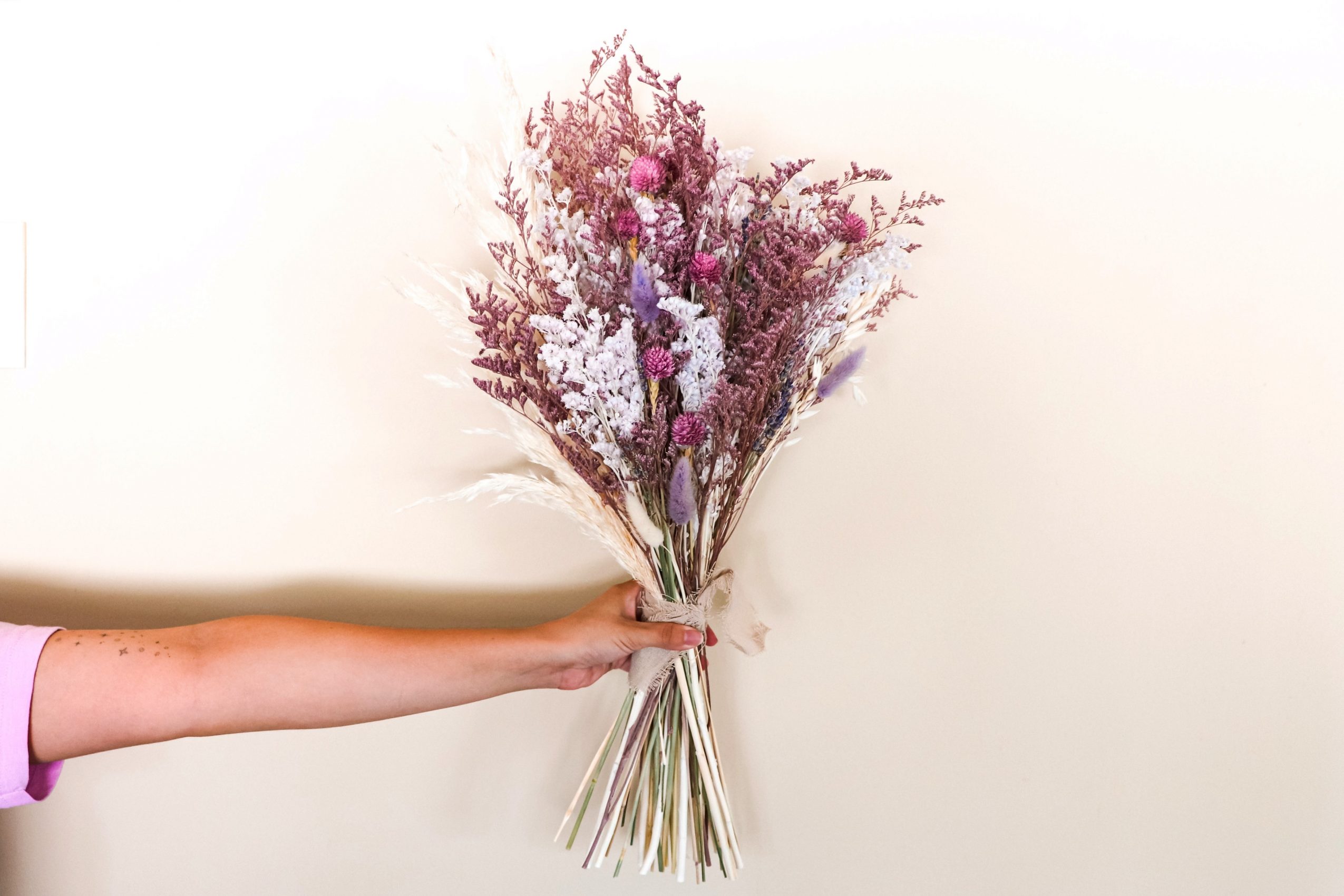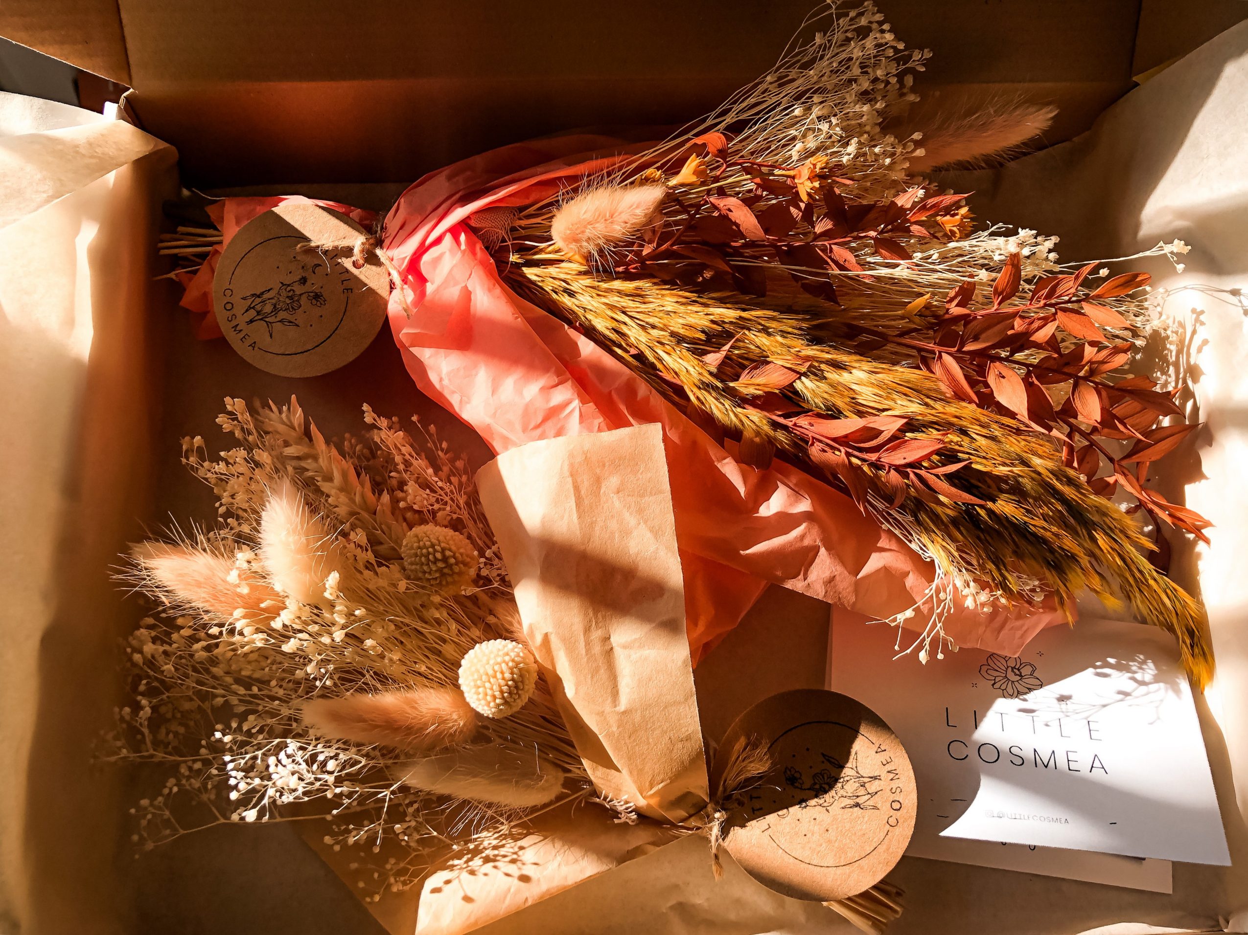 Like a lot of twenty-somethings, my late twenties were marked by a series of identity crises. I felt burned out by my career, hopeless about societal issues, and overall directionless. This led to a much-needed period of healing and inner work. During this time, I had a strong desire to nurture areas of my life that I wasn’t giving enough love to, including my creativity. Having always been inspired by nature’s beauty, I started playing with fresh flowers as a creative outlet. I loved working with my hands and connecting with florals in a very tangible way. This ritual became a source of joy and serenity for me. I began taking floral design workshops and watching tons of YouTube videos. Soon, I started sharing my creations with friends and loved ones to spread that same joy that I felt. During the pandemic in 2020, I shifted my primary medium to dried florals as they could easily be shipped and would allow me to connect with loved ones throughout the country that I couldn’t be with in person. I opened Little Cosmea as an official business in January 2021 to bring that same touch of magic to even more folks and their loved ones.
