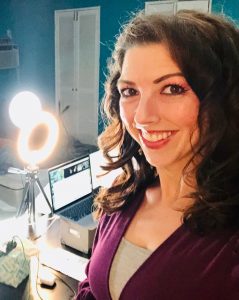 Around the same time I started teaching, I auditioned for The Leather Apron Club at Theatre West and got the role. I had been away from acting for a couple of years, so I felt intimidated and rusty going full-force into my first big dramatic play. But, soon I felt totally at home and remembered the amazing feeling that comes with theatre. It was the role of a lifetime and a difficult but rewarding experience. Theatre West very quickly became my theatrical home and thanks to the awesome workshops they hold every week for members, I started writing more, acting more, and volunteering for any creative project they threw my way. I designed a set for Storybook Theatre’s Peter Rabbit. I built new beauty boards and decorated them weekly with pictures and info for current shows. I wrote monologues and plays and silly scenes. I met the most wonderful encouraging people that allowed my talents to shine in several different arenas. When Covid struck down live performance in its tracks, we quickly picked up on Zoom and adapted to online theatre/film/writing. And that’s where we are now!