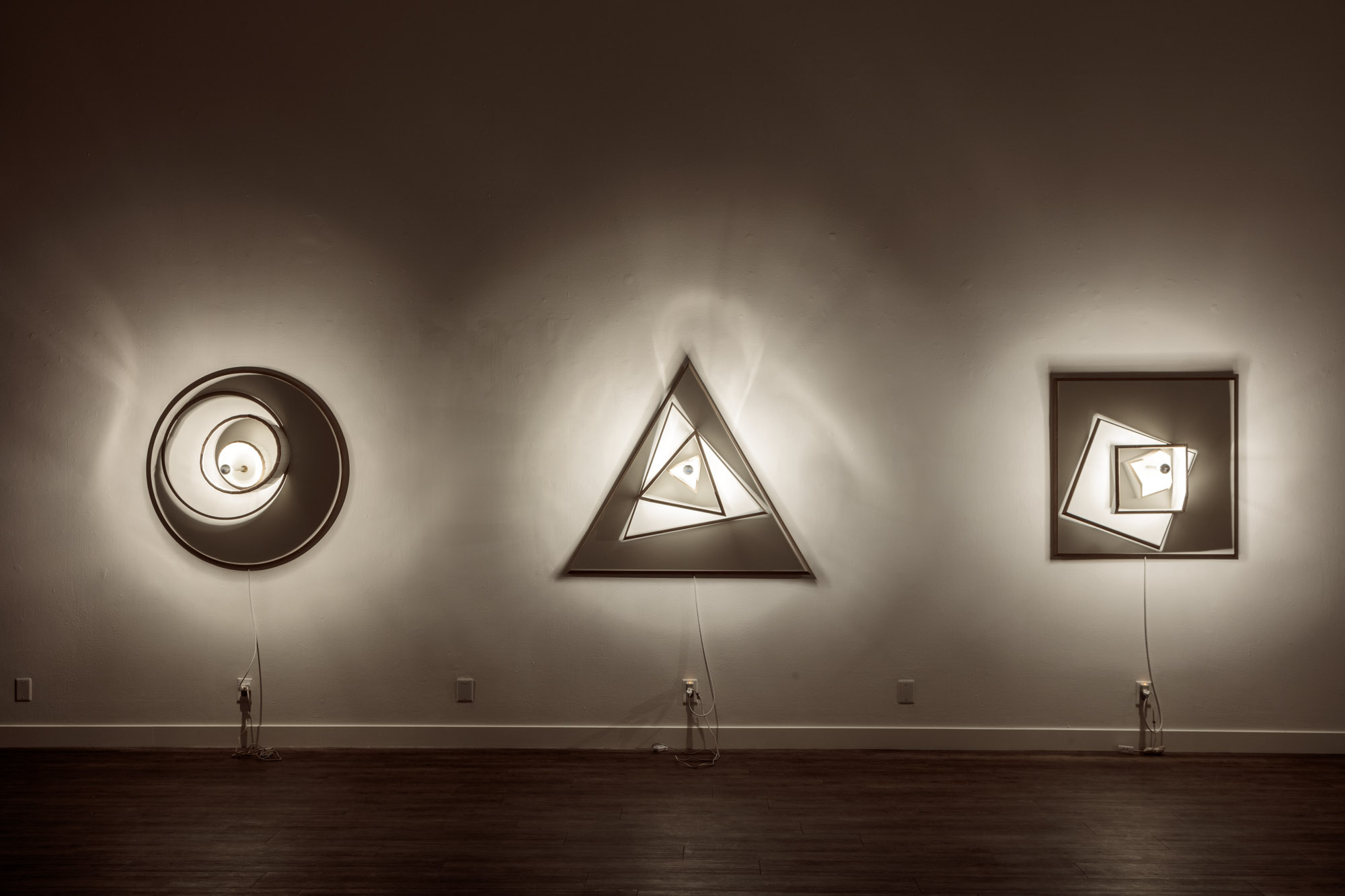I have been focused as an Artist, specifically in Light Art for the last 9 years. Its here that I believe I have created works that resonate with people, whether in the art work or not. I use simple means (like a single light bulb) to create complex illusionary shadow effects, or use a walled construction specifically designed to fully express colored lights behavior by putting you in an immersive Color Wheel (2022) room construction. My latest series Flowers for Euclid are a series of resin cast sconce light fixtures, fashioned into triangles, squares and circles , that create the exact same flower shadow shape (and size) on the wall. Also in this series is an organic resin shape (same outline shape when viewed straight on) that creates circle, tringle and square shadows. The work looks very “normal” at first glance but viewers take a pause, and realize there is another layer of visual complexity. I think my work resonates with a broad audience walking a line between architecture, art, and utilitarian. Even if I am working on objects in a room, I take a wholistic spatial approach, making sure to understand and react to the entire room.