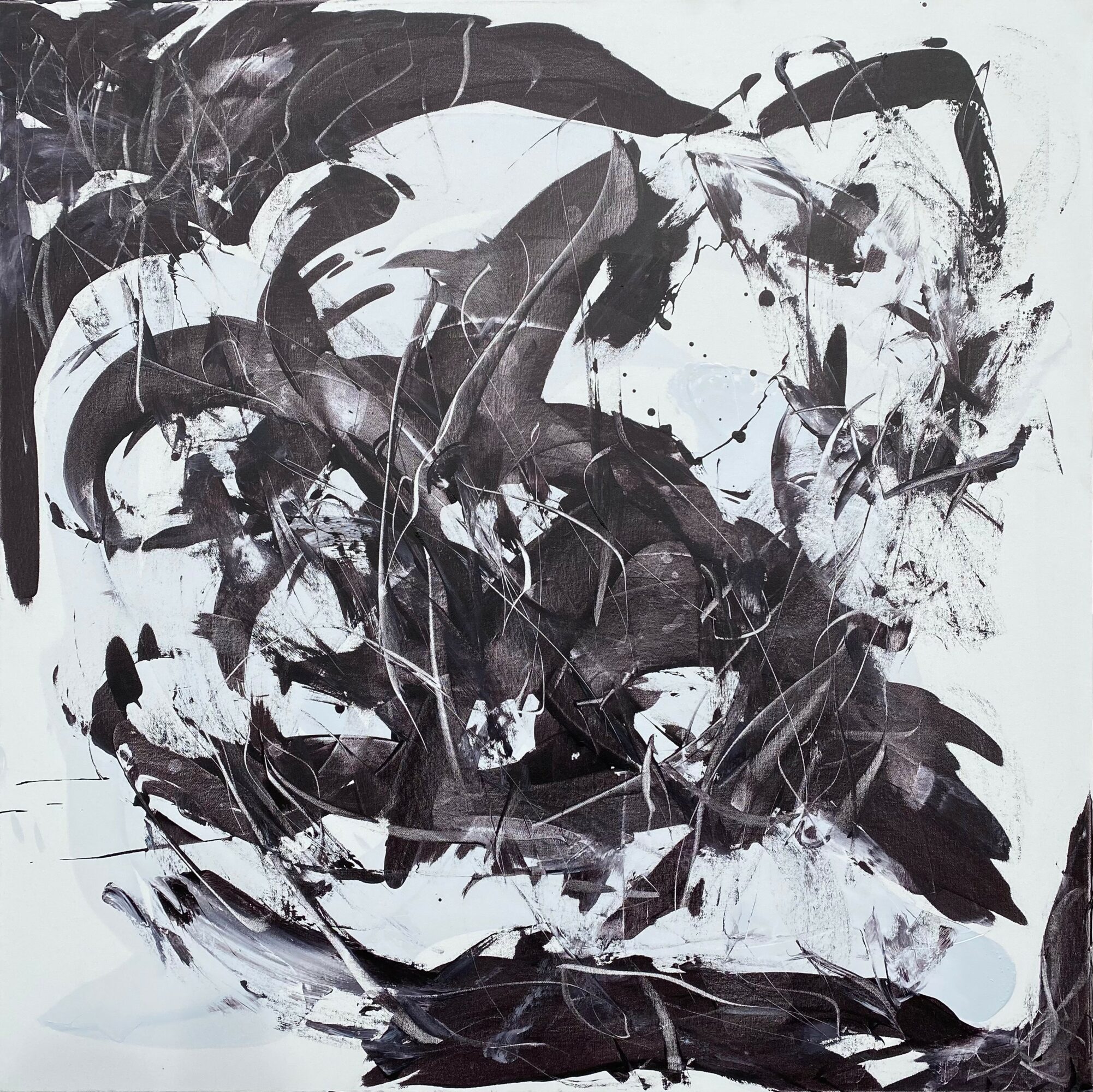 That shift led me deeper into abstract painting and Jungian psychology, particularly shadow work—the process of confronting the parts of ourselves we often repress. My art began to reflect those themes: raw, intuitive marks that suggest something familiar yet elusive, triggering inner reflection in the viewer.