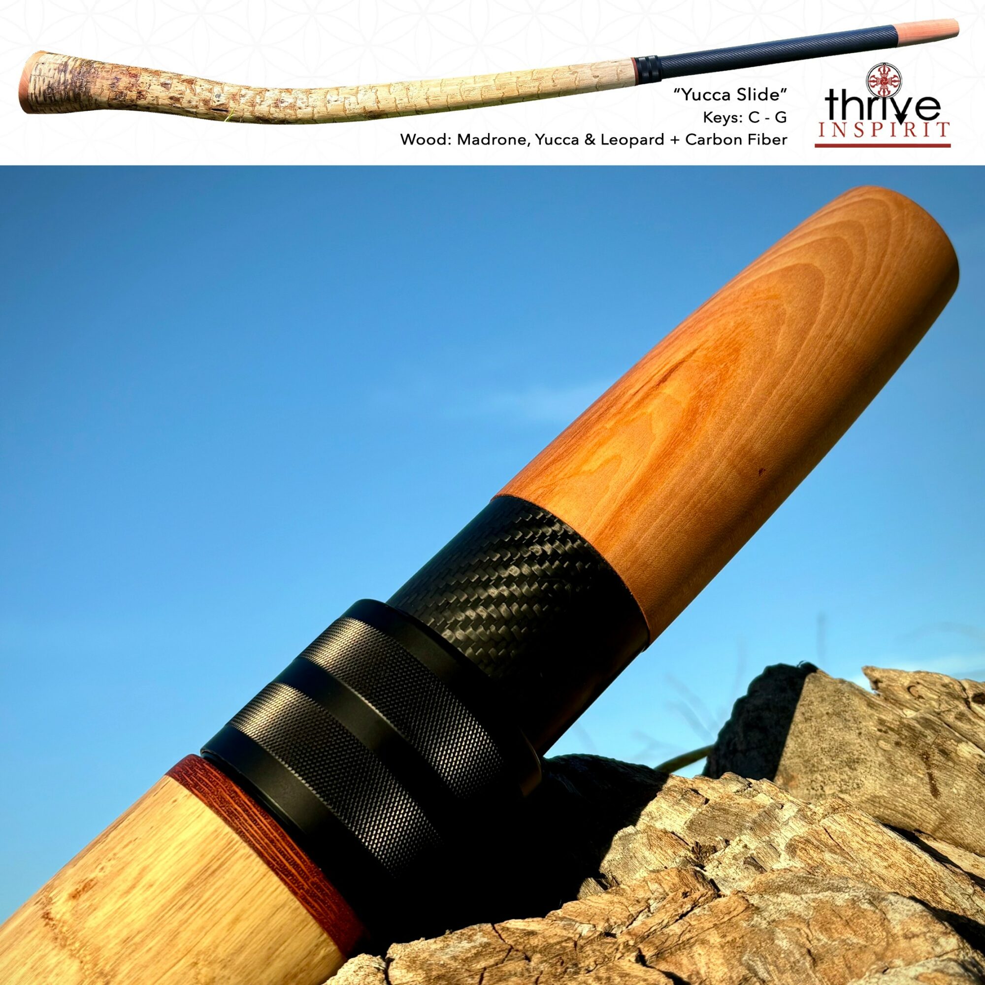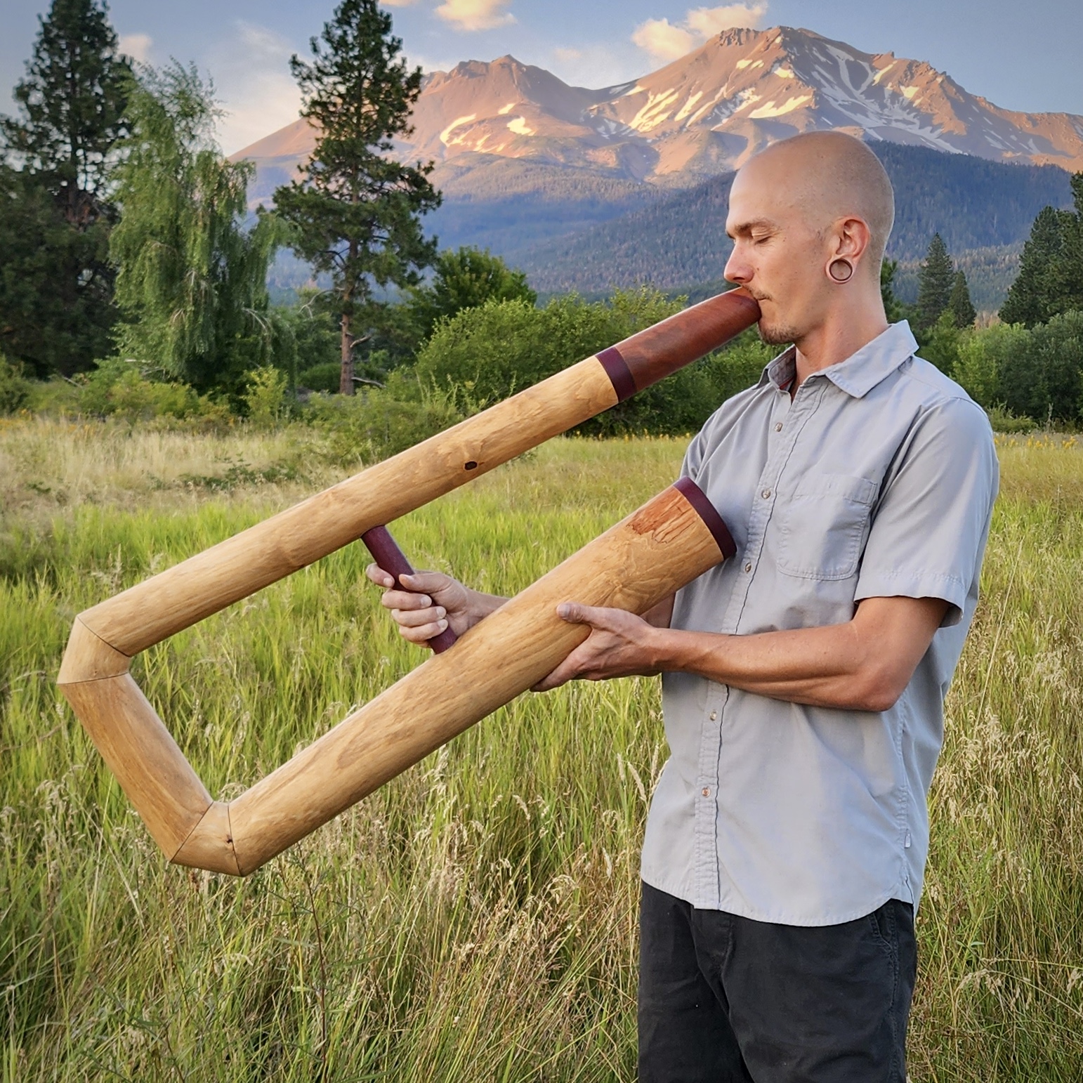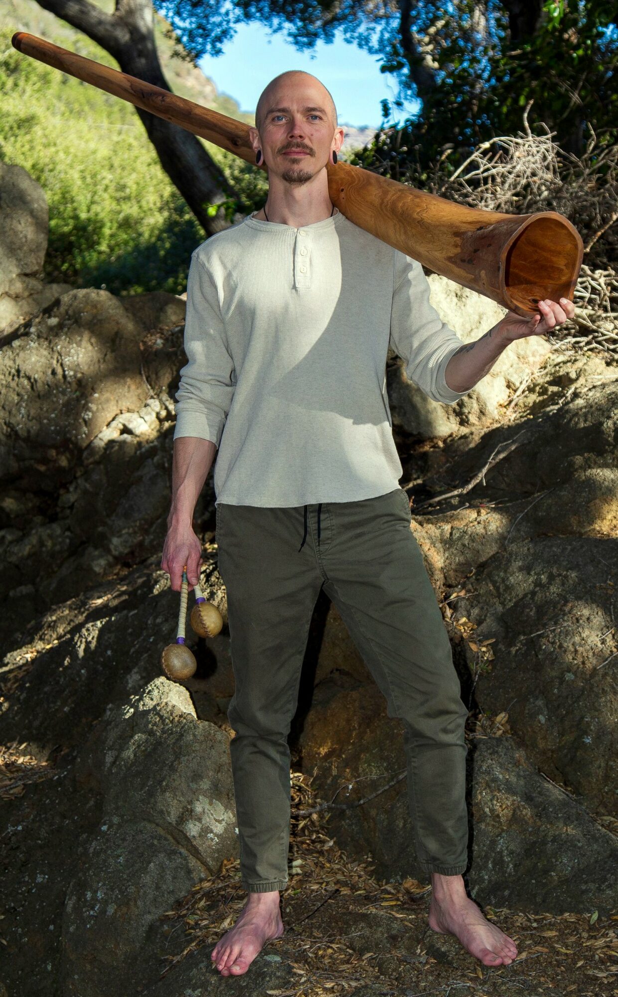 Shortly after, I felt a deep pull to begin crafting my own Didgeridoos—and eventually, crafting them for others. There’s something deeply sacred about creating your own instrument: harvesting trees like Alder, Olive, Oak, Sycamore, and Yucca—mostly from Mount Shasta and Ojai, CA—forming a relationship with the land they come from and then literally resonating with the instrument you’ve shaped by hand.