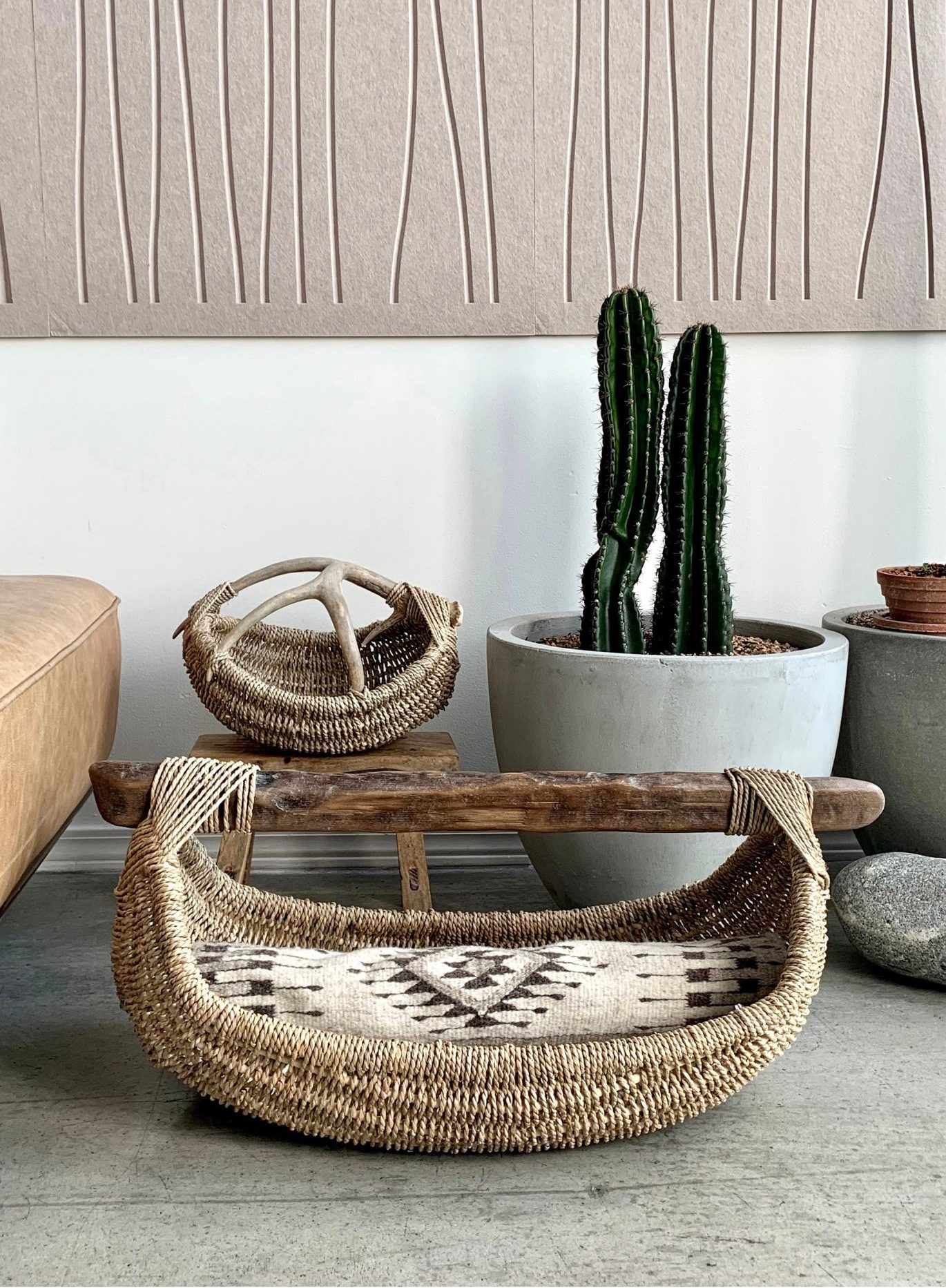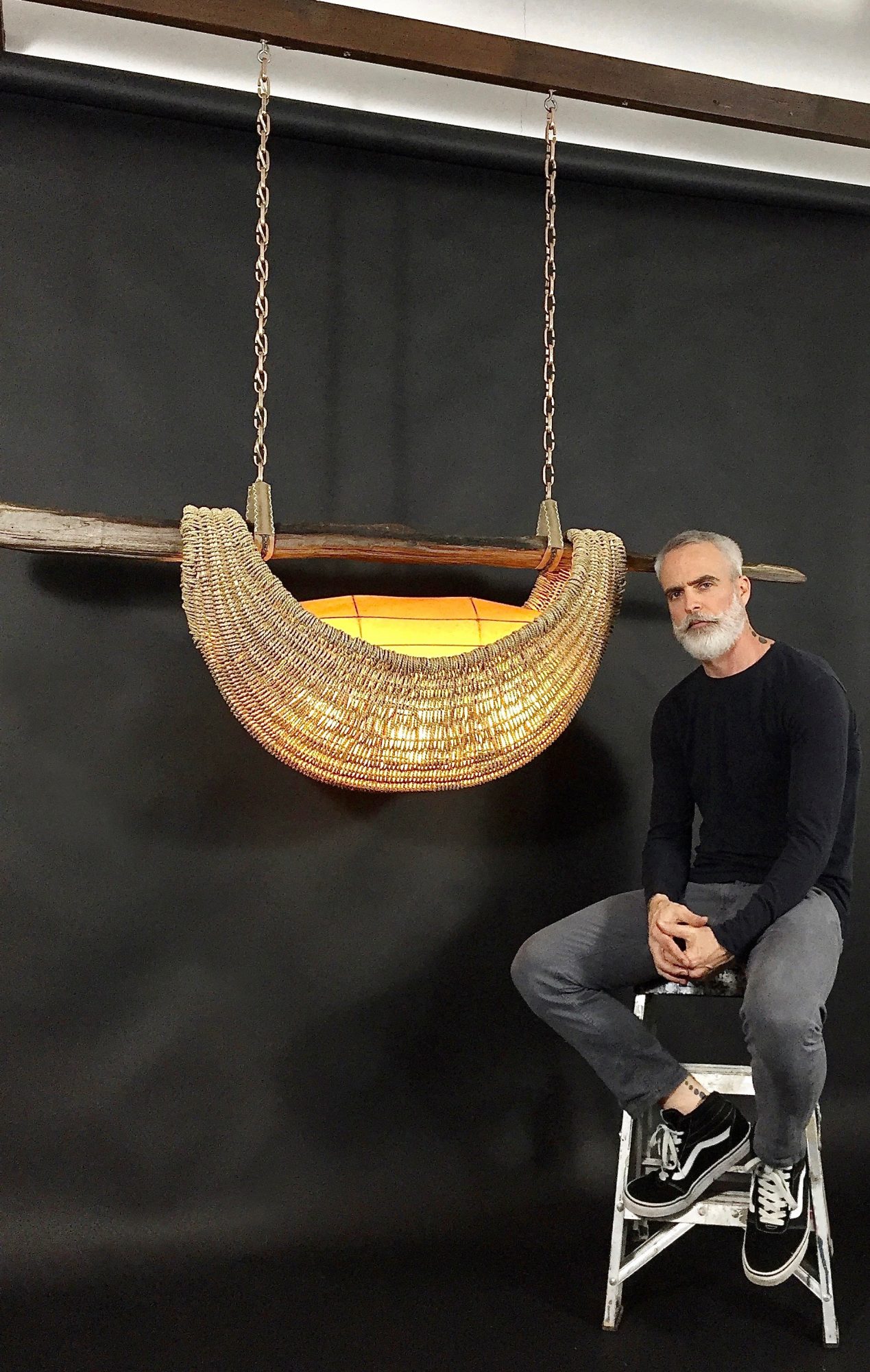 Then about eight years ago, I was inspired to explore producing products for home and commercial design applications. I started with basket weaving, incorporating antlers, wood, and other organic materials into the mix. With the help of an Interior Designer friend, my handmade “art baskets” quickly became sought-after pieces by clients and collectors around the world. This became another exciting extension of my brand which has now expanded into custom sculptural basket light fixtures that have ended up in popular restaurants, bakeries, and cafe’s all over Los Angeles and in a beautiful villa in Aspen, Colorado.