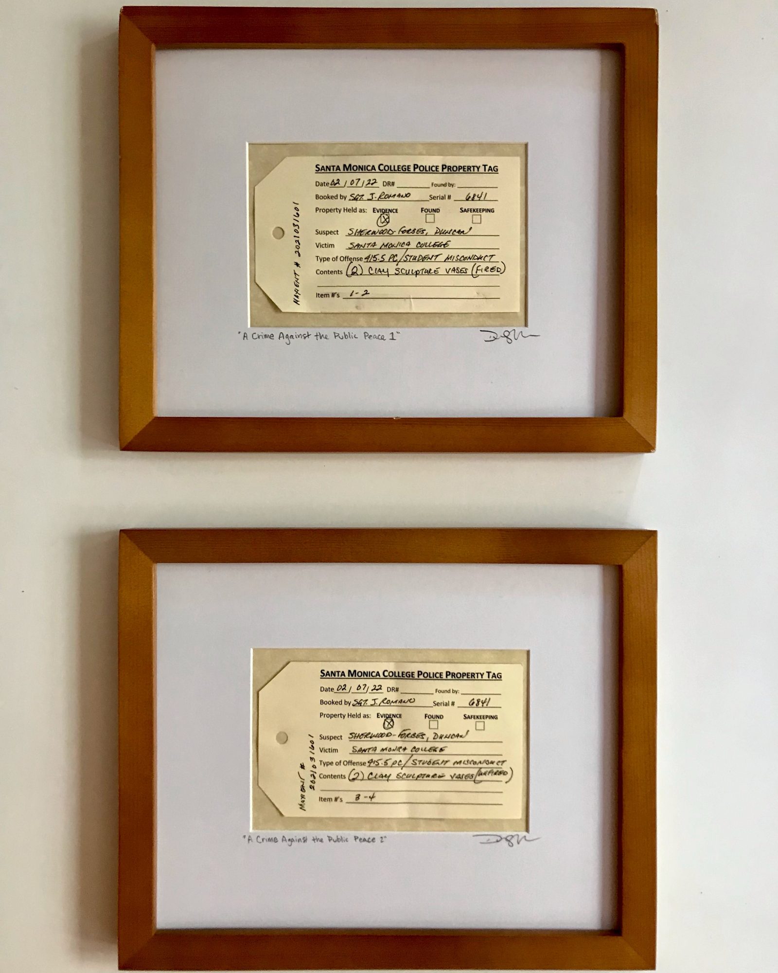 Begrudgingly I signed their agreement. When I retrieved my work, four pieces came with the EVIDENCE TAGS!