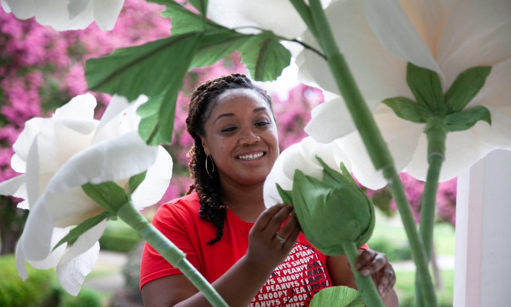 I have always been creative, working with my hands is my jam. I have a degree in visual communications and did hair and make for a while so obviously, I like making things look pretty. I started making paper flowers out of card stock back in 2015 as a side hustle after my sister-in-law asked me to make some flowers for an anniversary party. I switched to crepe paper as my main medium for the flowers in 2020 specializing in oversized blooms. In late 2021, I was invited by Sarah Campbell of Intrigue Design and Netflix star from the “BIG FLOWER FIGHT” to participate in a workshop as a featured guest down in San Diego. She found me on TickTock and took a big risk never meeting me in person or talking on the phone. I had just lost my job about a month prior was trying out doing the flowers full time. So my sister and I drove down and took a gamble of a lifetime. After the workshop, my following tripled on Instagram, I was flown out to Florida three months later to participate in styled shoot, after that I did my first hotel installation at Le Méridien Pasadena Arcadia and I started making sales on a consistent basis. Giant paper flowers are not new, however they are not common in the US. The combination of fresh flowers and faux flowers is on the rise, because of the shortage of fresh flowers due to high costs. I am blessed to have been given this opportunity and to find a niche that I am constantly learning from, building a community that is always growing, and creating memories full of love.