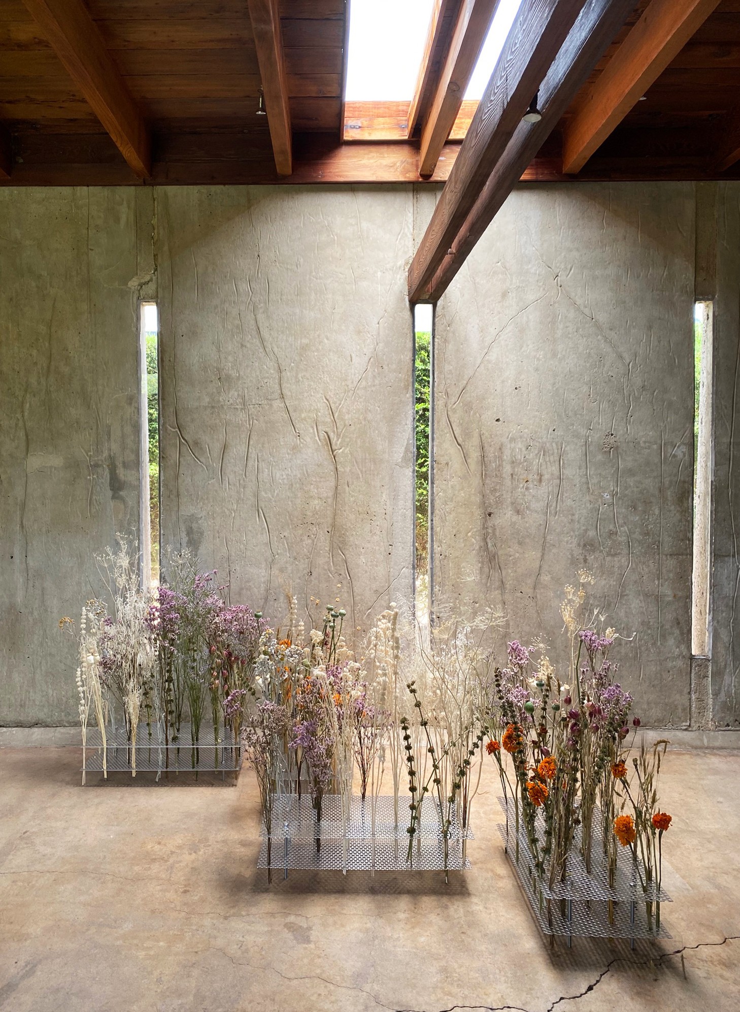 I studied architecture at Cooper Union and then worked in architecture offices in LA for a few years before going to Auburn University for a graduate program in design/build construction. I came back to LA and worked for a general contractor on large-scale public projects. I was always interested in landscape and took a field botany class at a community college–my first real foray into the natural world! I’m trying to do work now that melds the different worlds that I’ve been in—architecture, construction, landscape, flowers, art…it’s a lot of different things that are tangentially connected, and I’m trying to make everything I do into a more continuous practice.