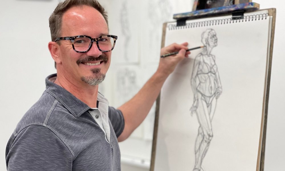 Specializing in drawing and painting the human form and experience is my passion. From moments of leisure to acts of kindness, my work is about how we interact. What we see and what we don’t see. The work has been described as… “Observations of moments in time.” It is rhythmic, contemplative and timeless. As a young artist desiring to paint the human figure, I chose shoes. Shoes became a surrogate for the figure. I called them shoe portraits and this is what I am known for. The shoe portraits evolved to people putting them on and moving around. At this point, it all became about POV. Noticing everyday moments that were so often overlooked is what I do. My most famous work is titled “Junk Food” and is a visual anchor on the Emmy award-winning TV show Modern Family. It is an image of a woman in red pants in black flip-flops. The desire to notice the overlooked turned to a focus on reflections and shapes that distort our natural mode of perception. Noticing this and focusing on it creates works of art allowing the viewer to see themselves in it. The natural focus is the figure… the desire for mastery is clear.
