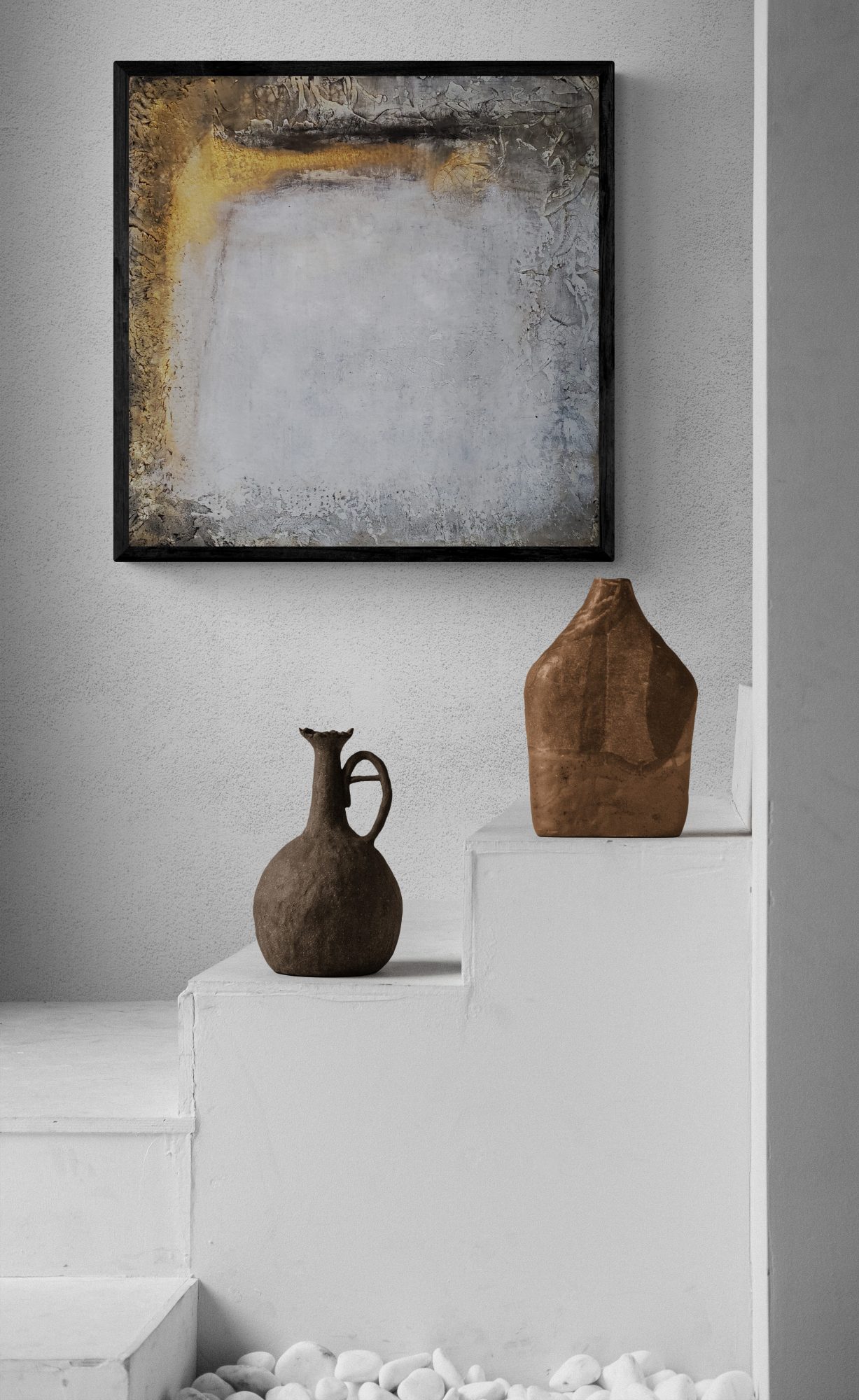 I was born in Rome in 1969. At the age of 20, I arrived in Los Angeles to study English and photography. Three events greatly influenced the scope and direction of my art journey, one meeting my first husband a great photographer and an amazing artist from St. Louis and second a 1994 photographing trip across America, viewing the vast landscape through the means of a modern eye (my Nikon), later on inspiring me to make my soft pallet abstract paintings.