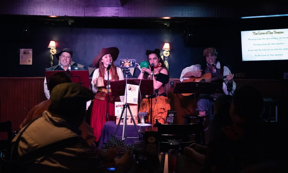 The Pub Sing is just so special to me. I have some truly amazing bandmates – Beverlee Jean, D.W. McCann, Aven Gonzalez, and when we’re lucky, our fiddler Seth Hansen. We’ve developed a really fun repertoire of classic folk songs & tavern tunes alongside a variety of nerdy & modern twists on the former and a number of straight-up parodies and original songs as well. The audience for these shows have also been so willing to play – folks will come dressed up, they’ll write verses and sing along with us. Some nights the humor just gets so wild I’ll be quite literally crying with laughter. It’s everything I wanted when I dreamed of doing a Pub Sing outside of the Festival circuit. While I know of a similar production that coincidentally started around the same time as us in NYC, we are – as far as I’m aware – the only Pub Sing like this outside of RenFest. We’re growing such a lovely community through these shows as well. If you like Renaissance Festivals or just love raunchy, nerdy, musical comedy – Pub Sing is the place for you. You don’t have to sing with us, but it sure is a lot of fun when you do!