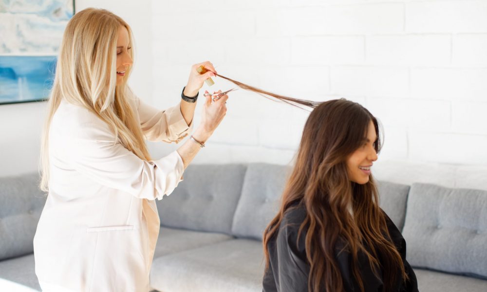 My specialty lies in creating seamless blends with extensions. It comes from the way I dry cut. It’s different from traditional dry cutting, where big sections are sliced off; rather, we take intricate pieces and taper the hair, creating movement and shapes designed to support the structure of the client’s hair as well as accentuate their face shape to bring out their best features.