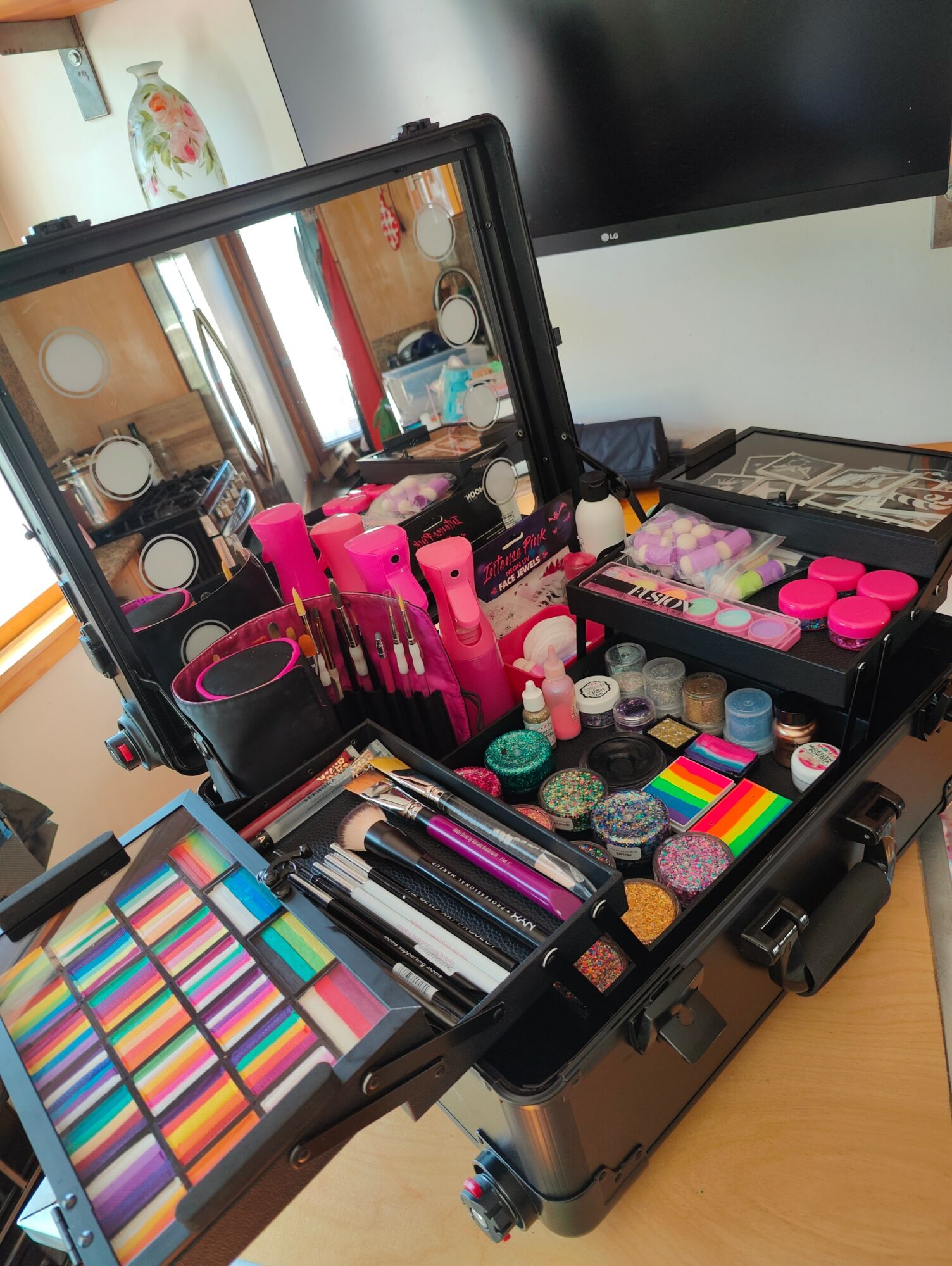I opened my small business (Magic Faces LA) in LA about a year ago. Last year I took my team to Adam Sandlers house for a UV Glow party, where we did Glow body paint with airbrushing and makeup. At first when they contacted me on Instagram I thought it was a scam haha. Also, this year, I was invited to Tik Tok Headquarters along with Glam Candy by Sophia to showcase what we do. Today, I spoke with another Marketing company and I will be working with them to produce ‘festival looks’ for a brand activation for fashion influencers on Labor Day.