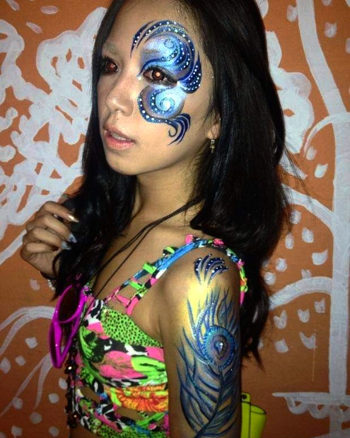 I attended University pretty late when I was 21 In Manchester England after a couple of years of solo traveling in Asia. At the end of my last year of university a friend asked me to go to to Island of Ibiza with her to set up a body painting company. I never had even held a paint brush but I was optimistic so I said yes and the following week we booked flights. Arriving in San Antonio, we were just 3 friends who wanted to have a great summer, make some money and meet new people. The island of Ibiza is in the Balearic Island famous for its wild parties, club nights and dance music. I started to practice on my arm or leg, watching how my friends worked for the first week until I gained the confidence to try and paint a person. Painting came pretty natural to me, and it got easier once I was familiar with the products. We spent the Summer painting clubbers, enjoying the beach and meeting people from so many places! I was hooked, the best feeling was seeing how glam, cool, pretty, fun, vibrant designs could instantly transform peoples mood.