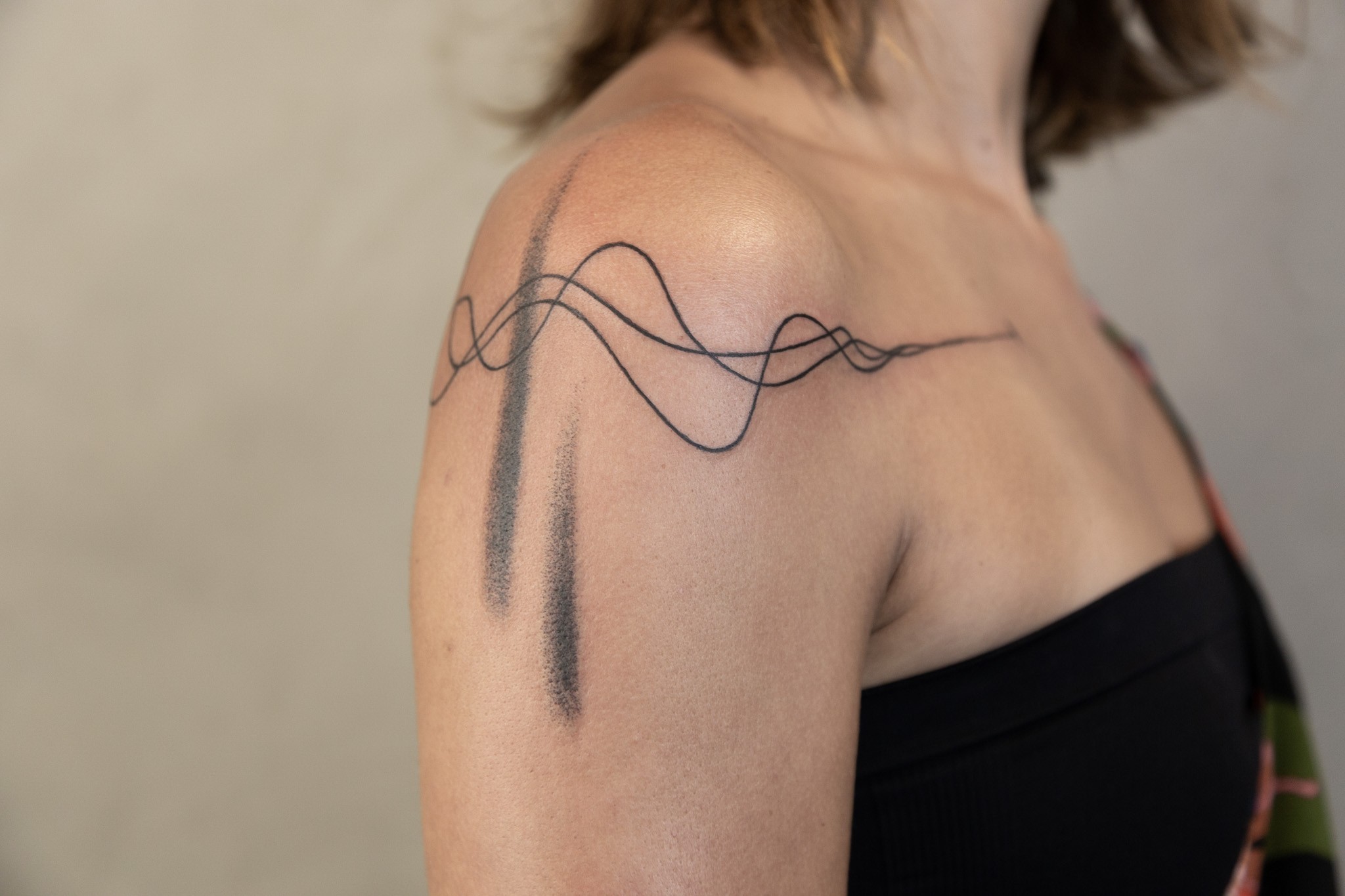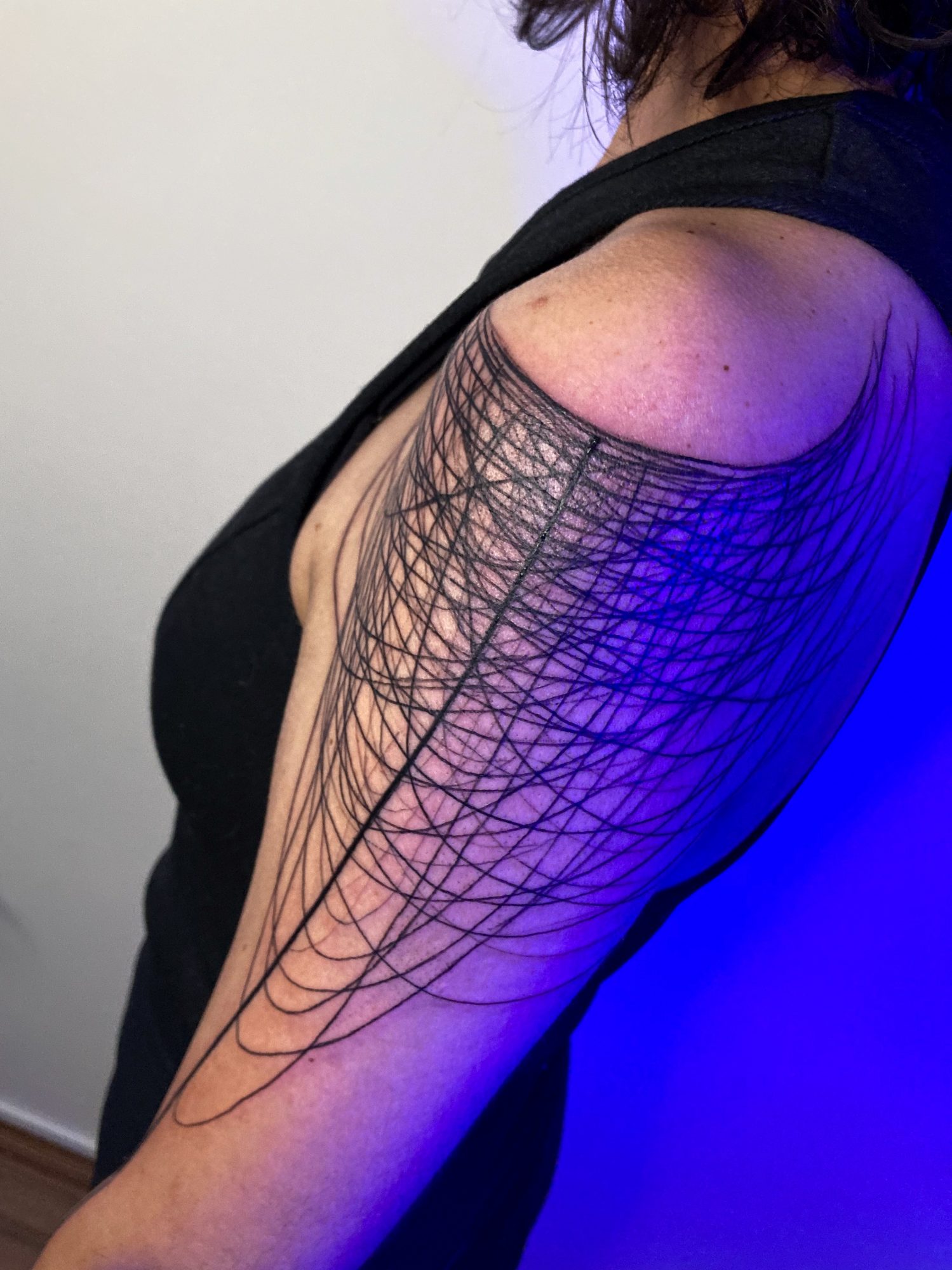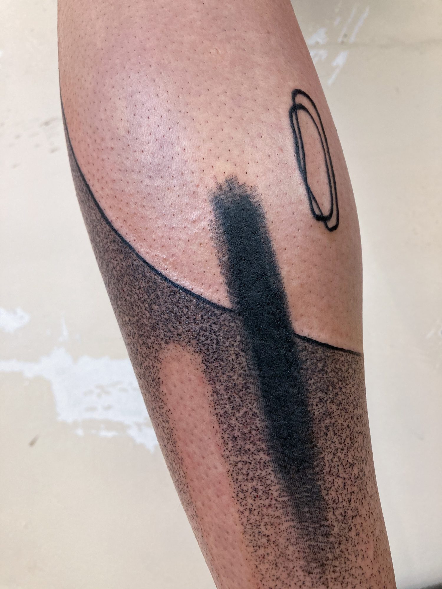 My work is dedicated to contemporary tattooing/art, exploring drawing in an intimate and existential way, and how it connects and expands when in contact with other human beings. I like to think for and compose with the body, considered not as a “canva to support my art” but as a person it is, and how they can wear design for life. I’m very involved in researching large abstract pieces, trying to balance solid and simple shapes with chaotic gestural lines and textures. I’m also developing a series called ‘visagens’ with smaller sketch drawings, which started five years ago like a classic “flash tattoo sheet” and had mutated into some kind of experimental graphic novel, but still all “tattooable”, or at least as an inspiration to get some.