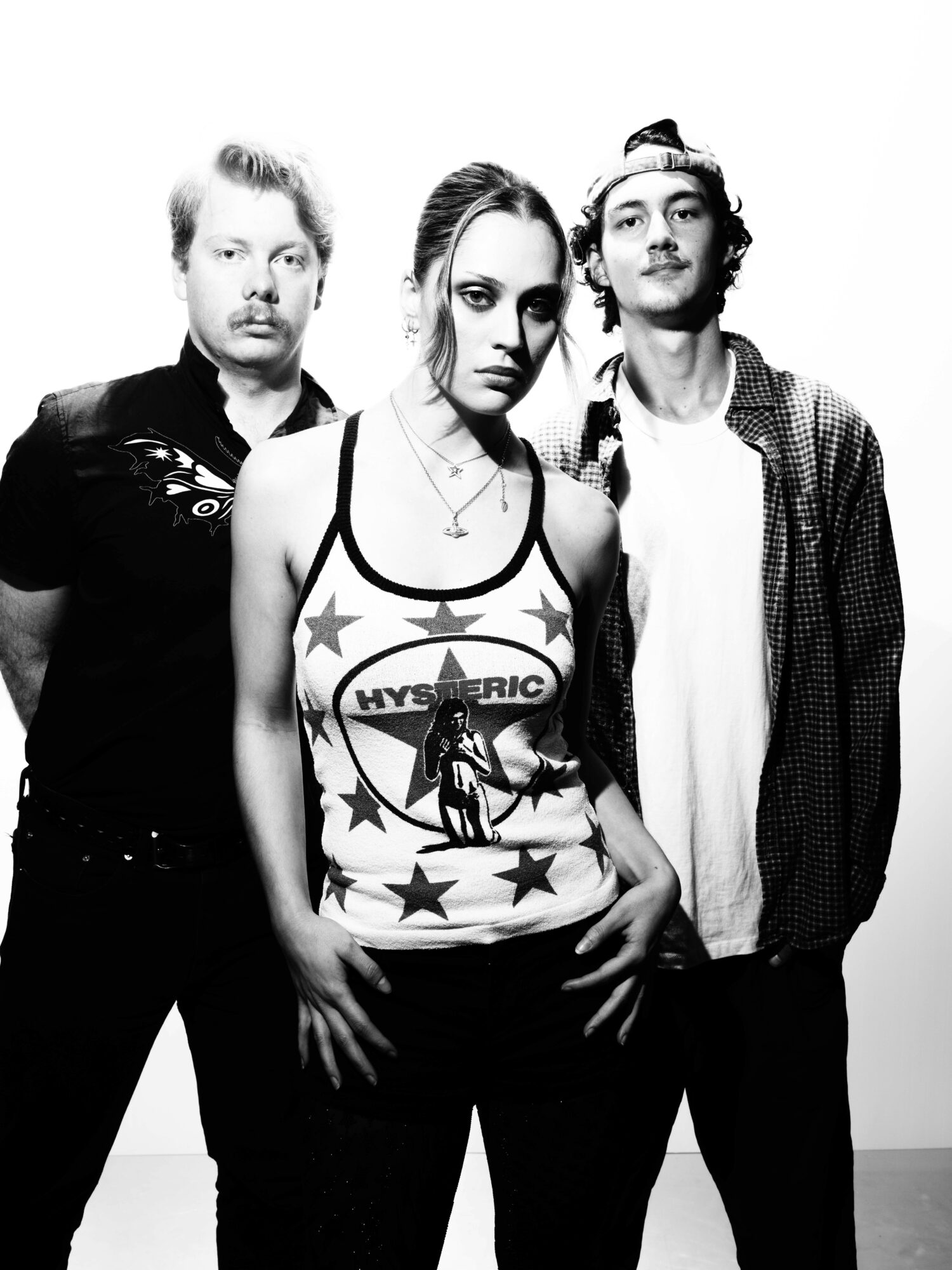 I’ve always been captivated by the energy, recklessness and vitality of music and aesthetics from the Y2k/2000’s and 90’s eras. Everyone looks so free, empowered, connected and like they are truly existing in the world. Alive, sweating, sexy and impulsive. I wanted to bring that back in any small way that I could. Cosmica is breaking down the boundaries, for everyone who use to feel too scared to cause offense, mayhem or truly be themselves. Cosmica represents the rebellion, alt rock needs to be fun again. We are part of that. Injecting the best bits of the years gone by into the now. We want to make people feel something again, be present again and grab you from your day to day life. I understand phones and social media are apart of the system (I use to be so against it) but it’s a love/hate relationship because I love bringing our fans to the present but then I do have to recognise that we’ve found so many Cosmica fans BECAUSE of social media. We are using it for it’s actual purpose, connection, to find our people and create real life situations where we can all be together at concerts, gigs and shows. The social media equals the international mosh pits and that’s what we want. Real life, real connections, fun and forgetting the daily grind. Feeling free and joining the rampage.