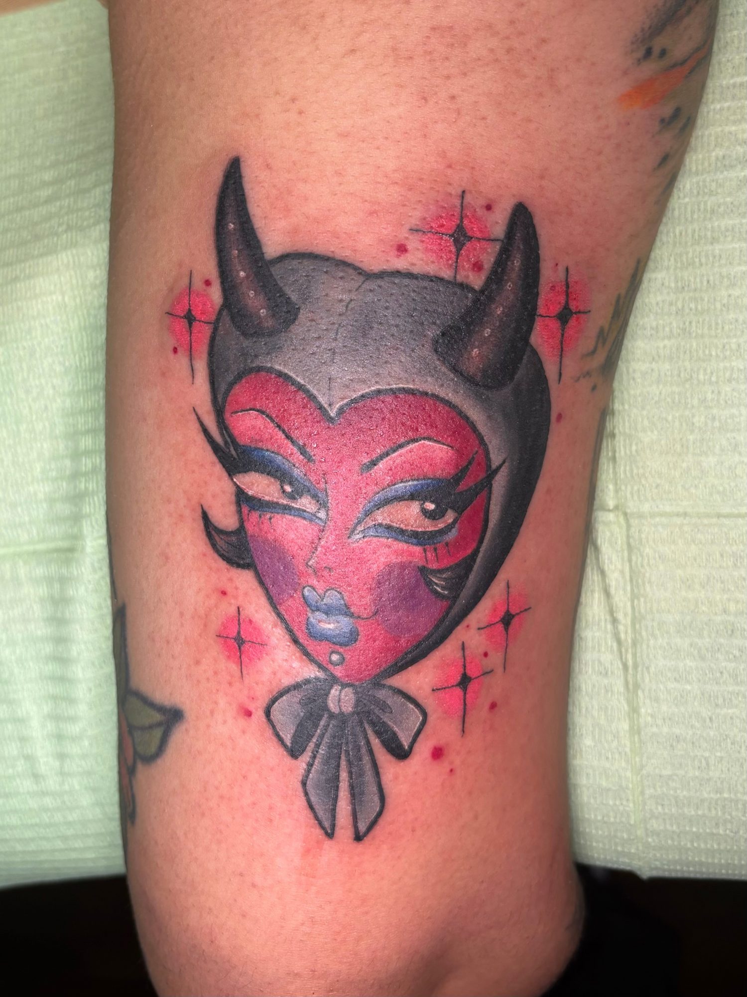 I’m a tattoo artist. I really love to do Disney, anime, and overall just cute, fun tattoos! I’m not too big of a fan of doing black and grey but I really love doing color tattoos! They are just so fun for me. I personally don’t think I have anything that sets me apart from others yet, just because I still have so much to learn. I’m just really proud of myself on how far I’ve gotten.