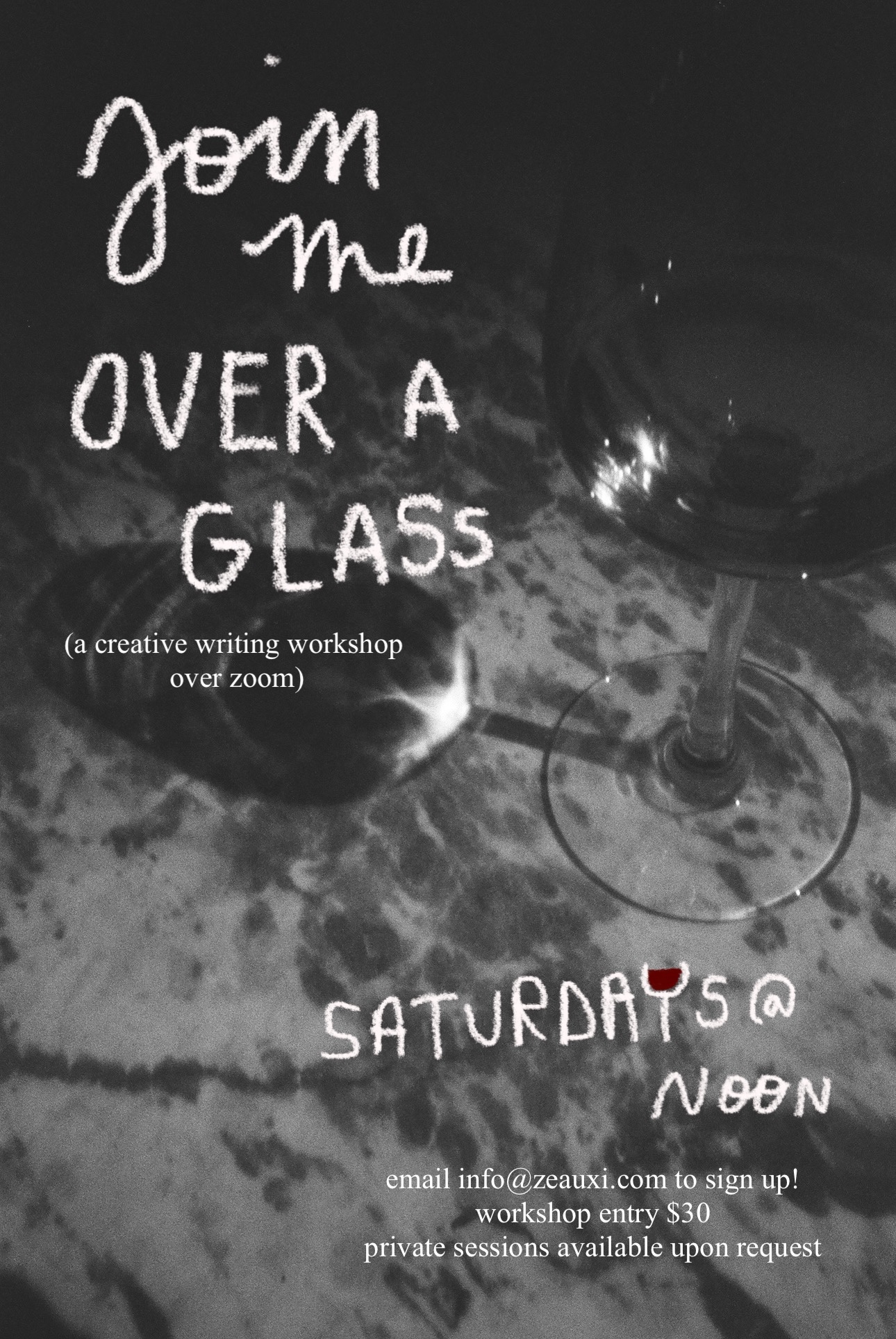 In addition to modeling and music, I currently host a creative writing workshop called “Over A Glass” and produce short films to accompany my Substack posts.