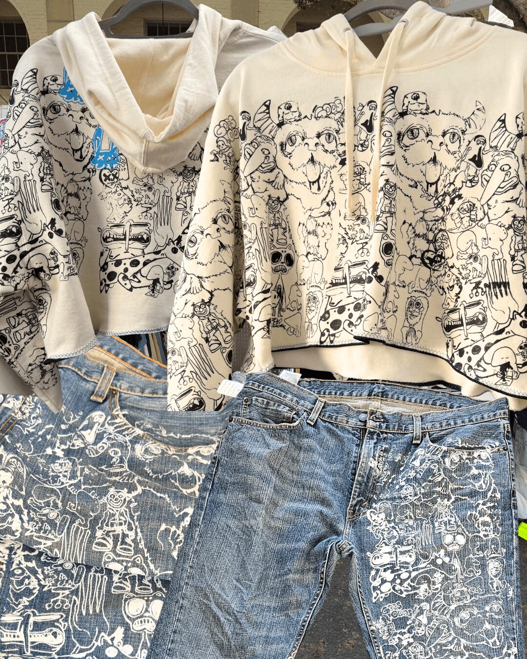 l started with adding the store he was ready to launch on his portfolio website and an instagram following his art as it travels the world, all benefiting youth mental health through art initiatives. We have grown from offering his “1 for you 1 for the world” sticker packs and a few t-shirts to now include his fine art prints, custom one of a kind and upcycled clothing as he had done for years leading up to his passing and so much more including an Art and Youth Mental Health 501c3 nonprofit in his name. He had his hands in every possible mode of creation This is an act of collaboration with him, as we often did, before my world changed. I print and produce all of his work and the clothing by hand, trying with my everything to hold tight to the vision he had for himself, as best I can through my hands. I think the world was supposed to know him and know his work and I know our youth resonate with it.
