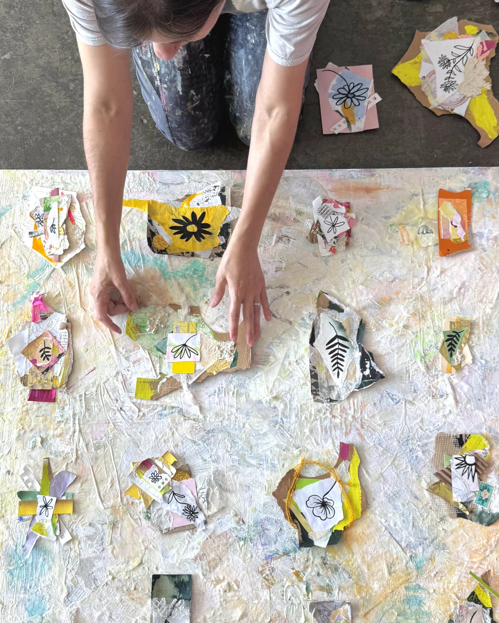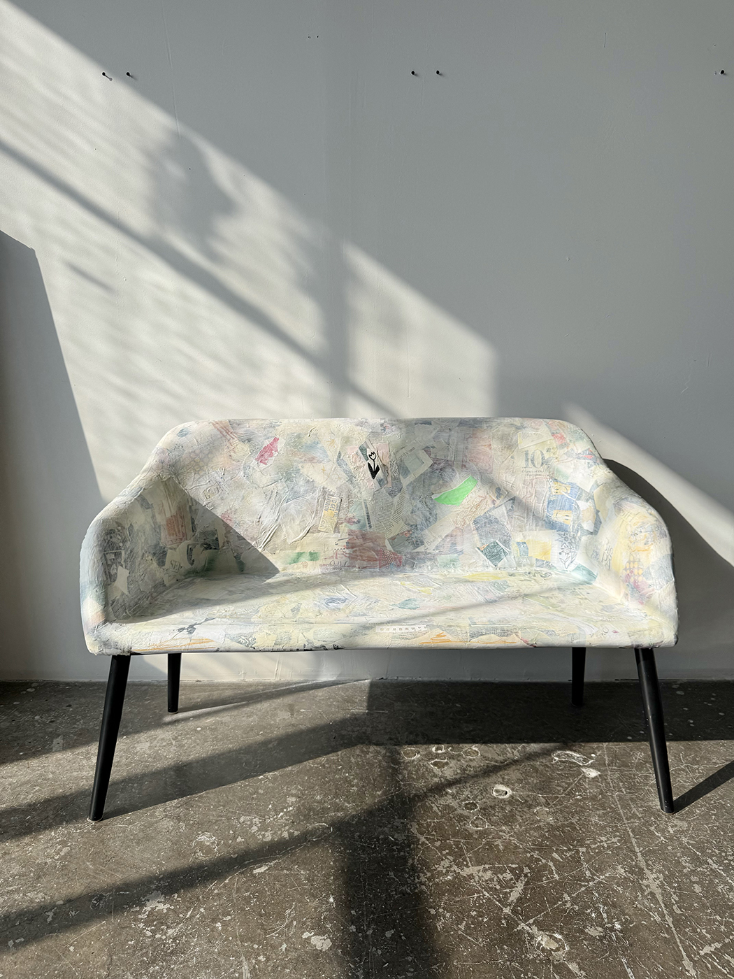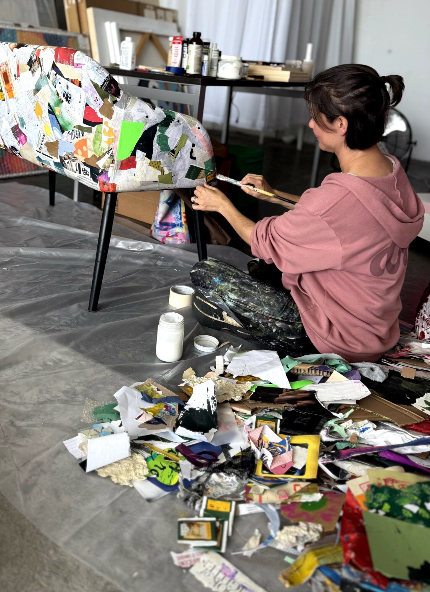 I focus on ecoart practices. This includes using found and upcycled materials, old packaging, cardboard, a variety of paper, magazines, paper pulp, and more. I recently started making 3D paper sculptures and collage and encaustic work.