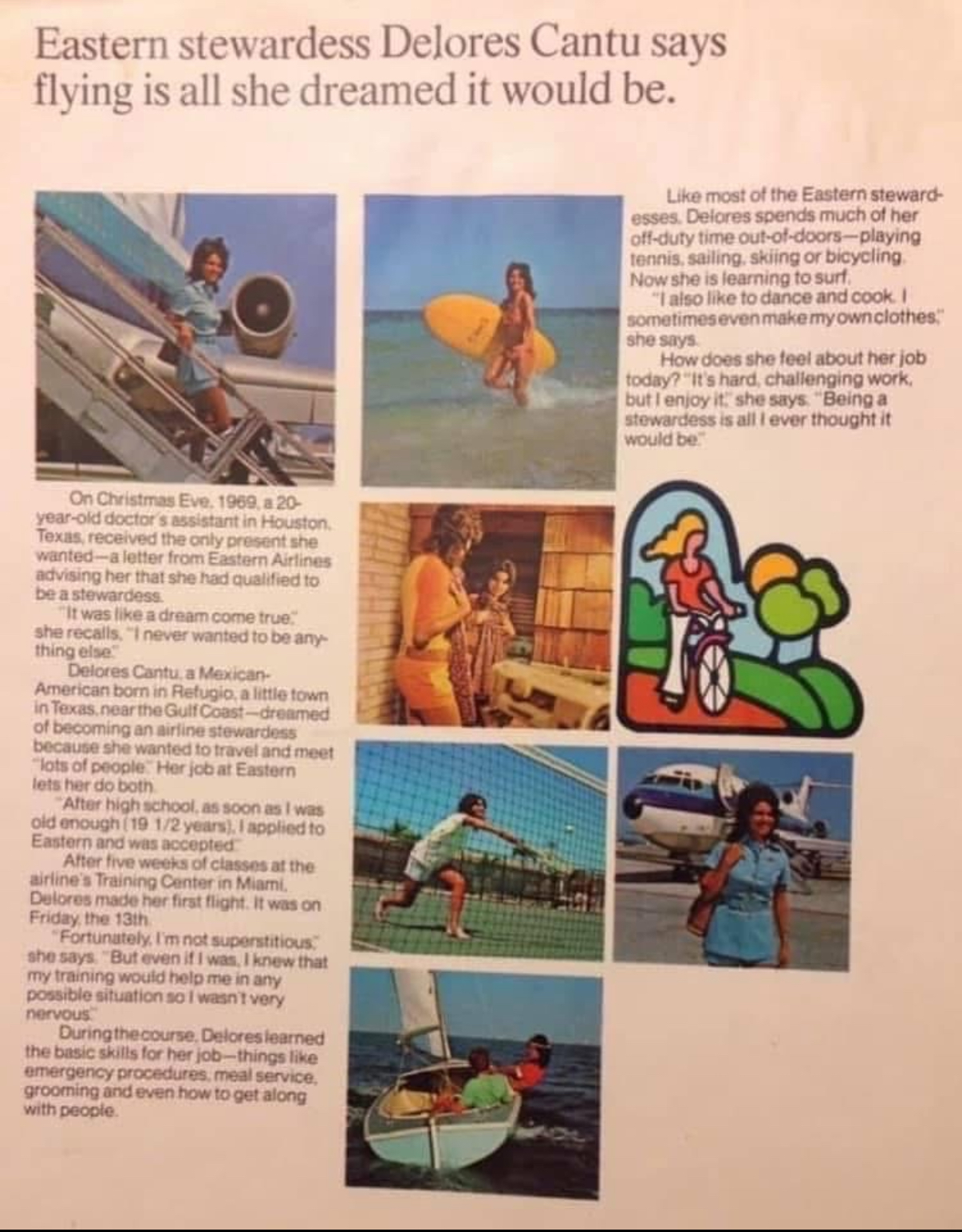 Dolores didn’t just fly. She soared. She was chosen as Eastern’s ambassador, crowned Miss Hospitality at the Miss USA Pageant in 1972. She was featured in commercials, photo shoots, even her own airline brochure—the face of possibility for young Latinas everywhere. At a time when few Latino families could even afford to fly, Dolores showed them a reflection of themselves in the sky.