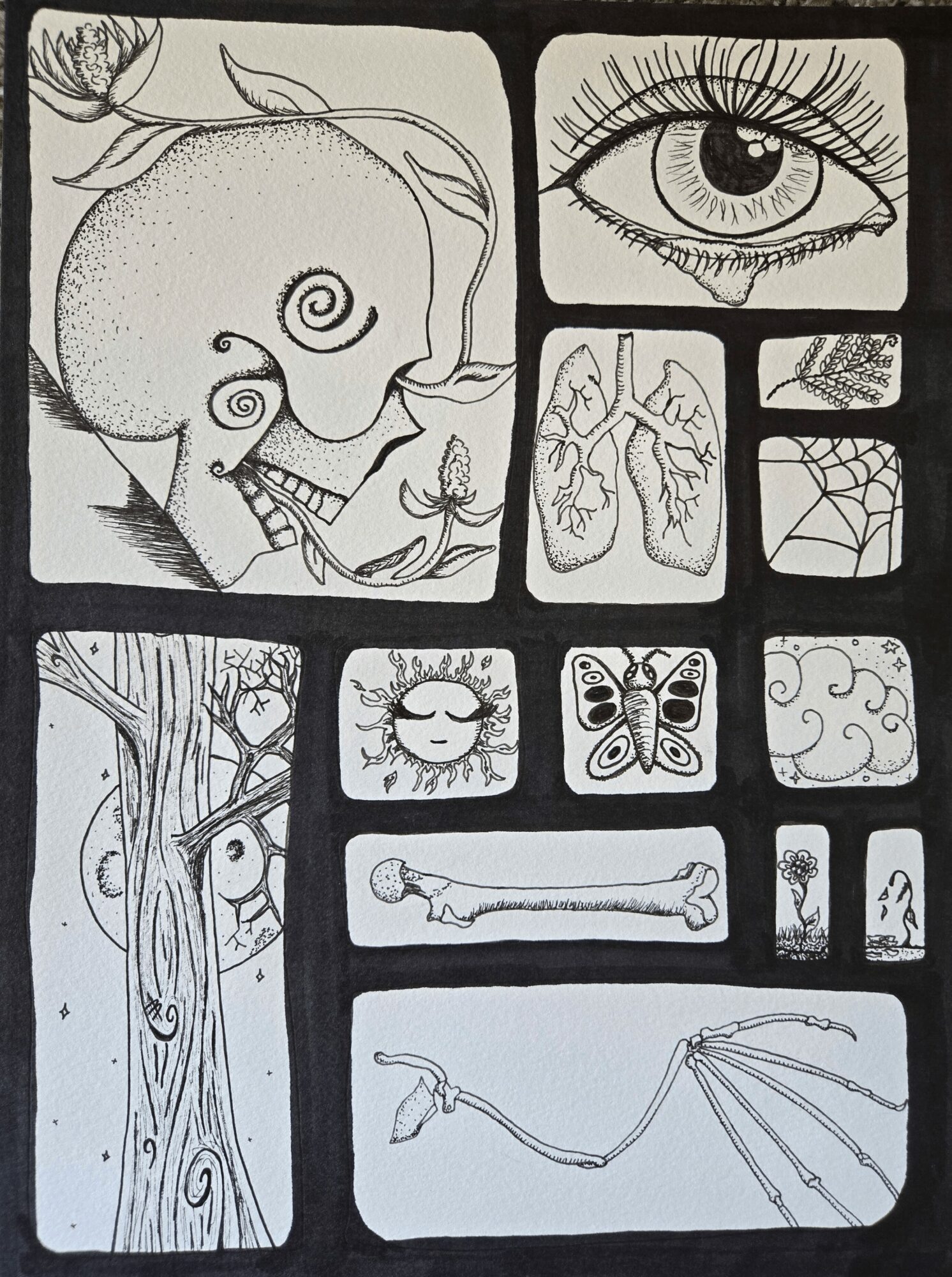 All of my works are hand-drawn and  inspired by music, nature, and life.