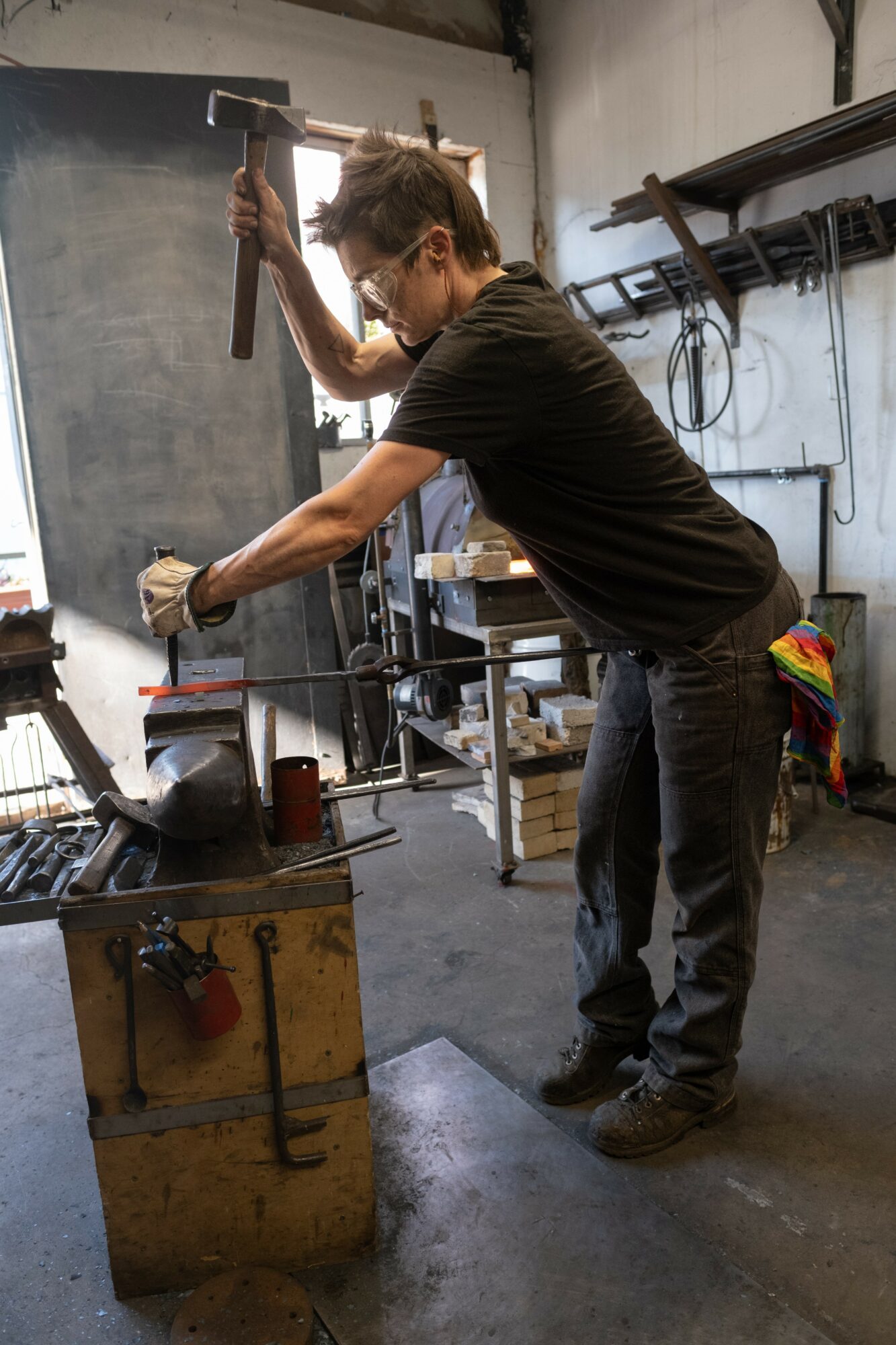Aside from everything else I do, I am first and foremost the mother of two young kids. My daughter is two years old and my son is almost 7 months. So right now a normal day is very much centered around them! In the morning we go to an early learning program or a library story time, then home for lunch and nap, then maybe art or playing in the backyard or walking to the park, and maybe I can fit in a visit to the gym where they get to play in the kid zone. In between all of that is a lot of crying, laughing, a surprising amount of deep and interesting conversations with a two year old, and more television watching than I would really prefer. If I get both of them to sleep at the same time for nap I get a precious hour or two to myself to work on some blacksmithing planning, drawing, or making stained glass in my garage. My son is napping on me and my daughter is asleep in her room right now. On one day a week I teach welding and occasionally get some other work done. That work day is really my day off!