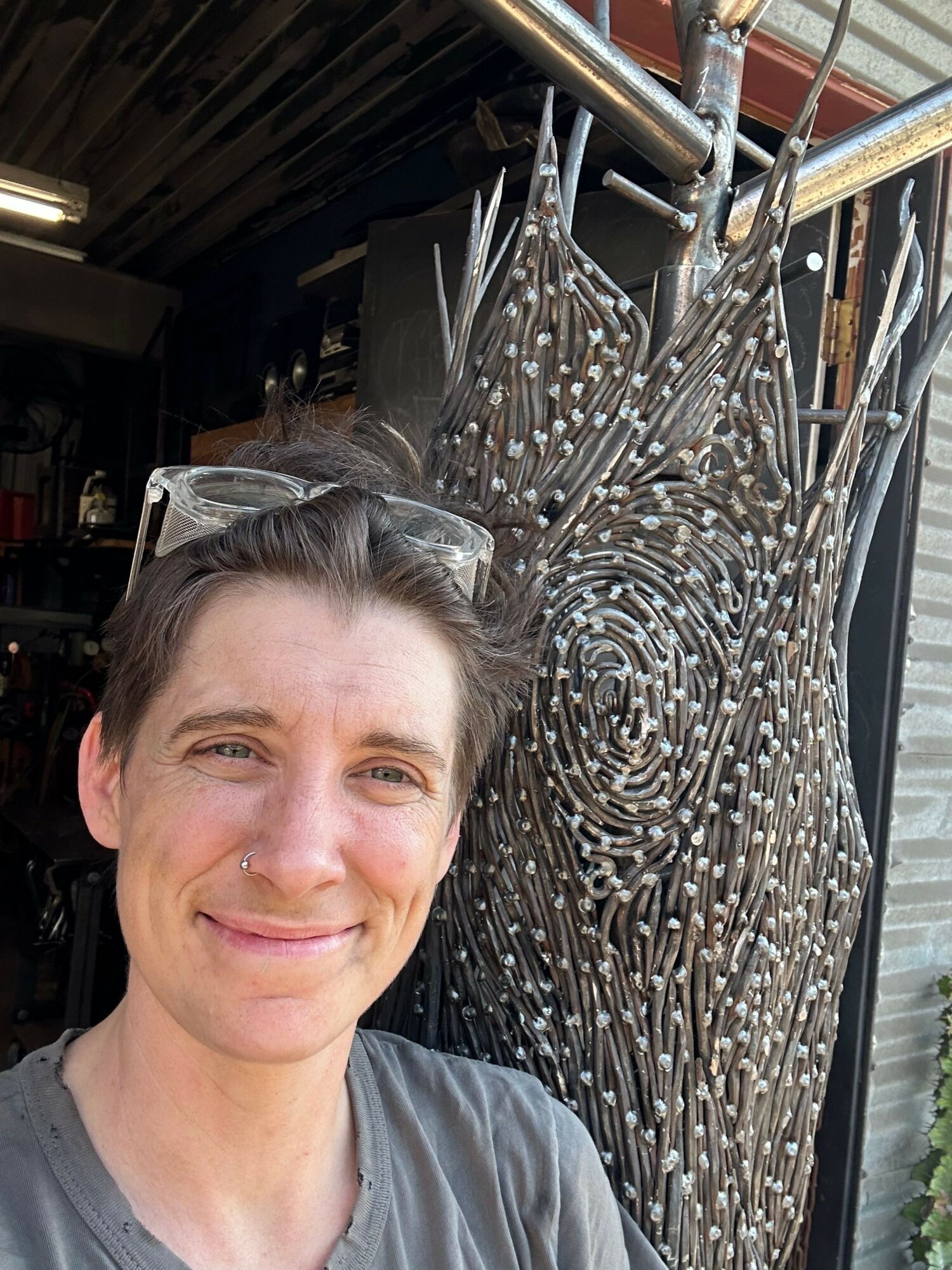 I have an early memory of empowerment in my childhood garage. My sisters and I were always very creative and loved to make up our own games and stories. One game we often played was survivor Barbie! The story might change, but somehow or other our Barbie dolls always ended up stranded in the wilderness and having to survive on their own. Since they usually came with dresses that were entirely impractical for such adventures we sewed them pants and other more useful attire. We also built them more and more extensive shelters in which to live. I don’t remember what it was I needed exactly, but I was trying to make something out of a nail in our garage. We had a limited work bench with scattered tools, but one of them was a saw with a metal cutting blade. I remember cutting the head off a nail and feeling an incredible sense of awe and empowerment. If I could cut metal I could do anything! Looking back now I consider that to be the start of my journey as a metal artist.
