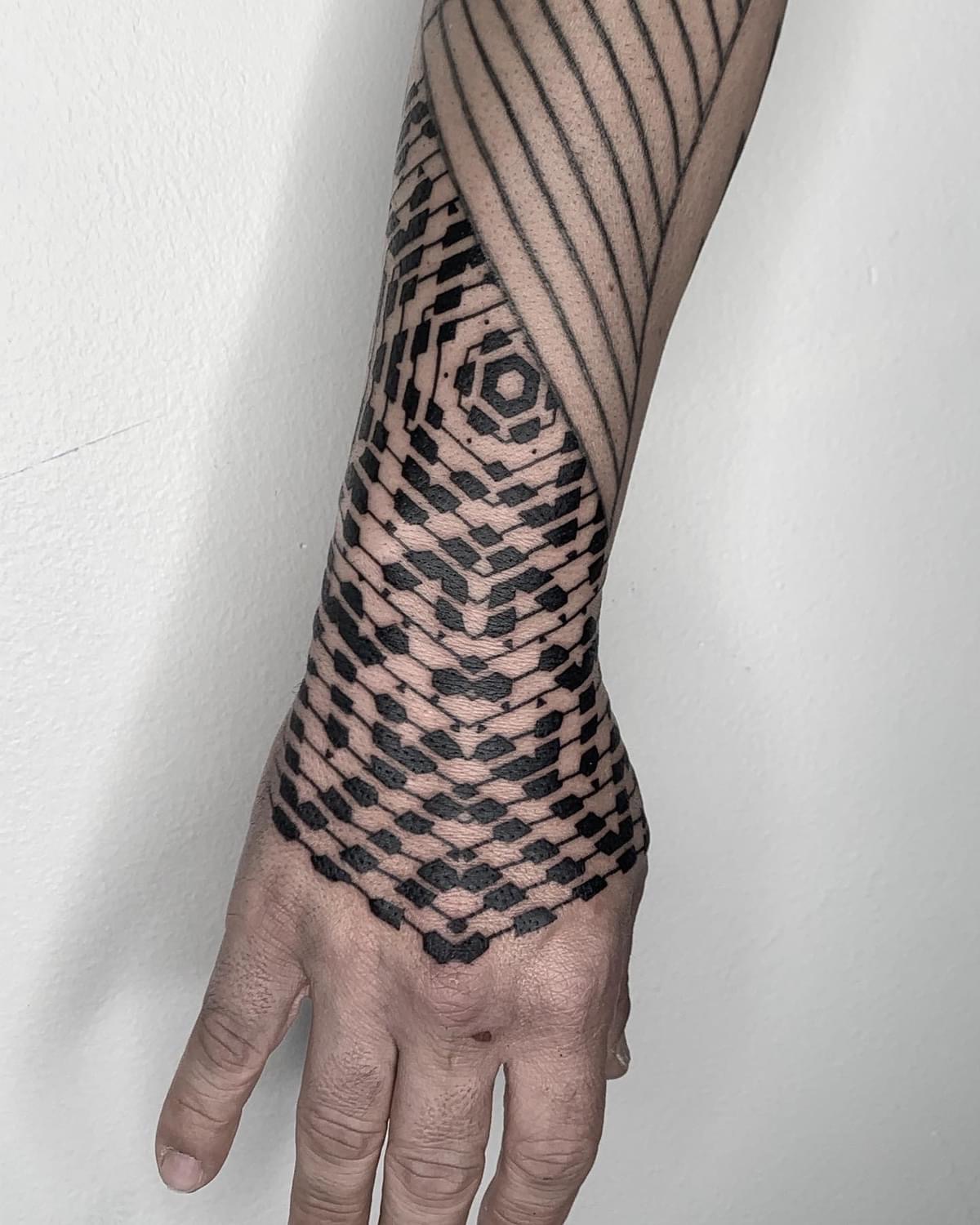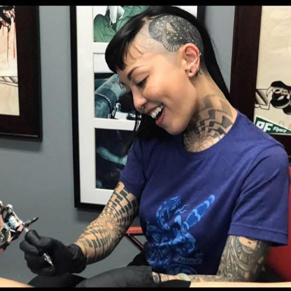 I’m Lain Freefall- I tattoo out of The Queens Head Tattoo in Koreatown, LA (I still travel across counties and different states) specializing in blackwork and dotwork, though I love exploring all styles. Outside of tattooing, I’m raising my child, caring for a little backyard farm with chickens and a cane corso, and training in jiujitsu and Muay Thai. Gym life isn’t always easy- I enjoy it, but sometimes life just gets loud and it’s a battle in my own head. Art, training, and being present with my family kept me balanced. My work is all about connection- translating people’s thoughts and experiences into something permanent, personal, and beautiful.