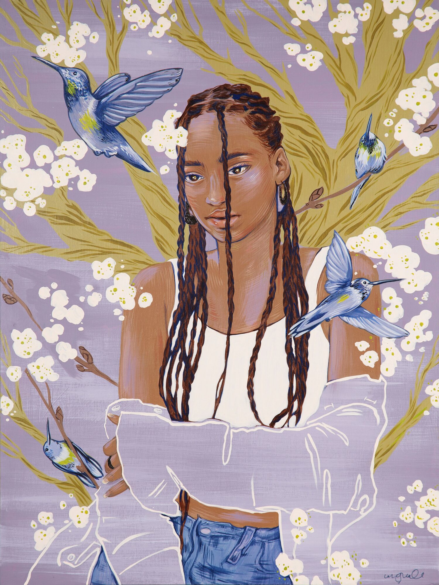 My name is Margaret, and I’m a fine artist who creates nature inspired paintings that live somewhere between the real and the surreal. My work blends muted, dreamlike palettes with unexpected bursts of color and detail; a balance that captures both serenity and wonder. I often describe my style as magical realism or pop surrealism, though lately I’ve been exploring more abstracted versions of these worlds as I push my visual language in a new direction. My paintings are rooted in appreciation of the subtle beauty around us. They are an attempt to highlight the hidden magic of the everyday or a stunning moment of nature’s unrivaled splendor.