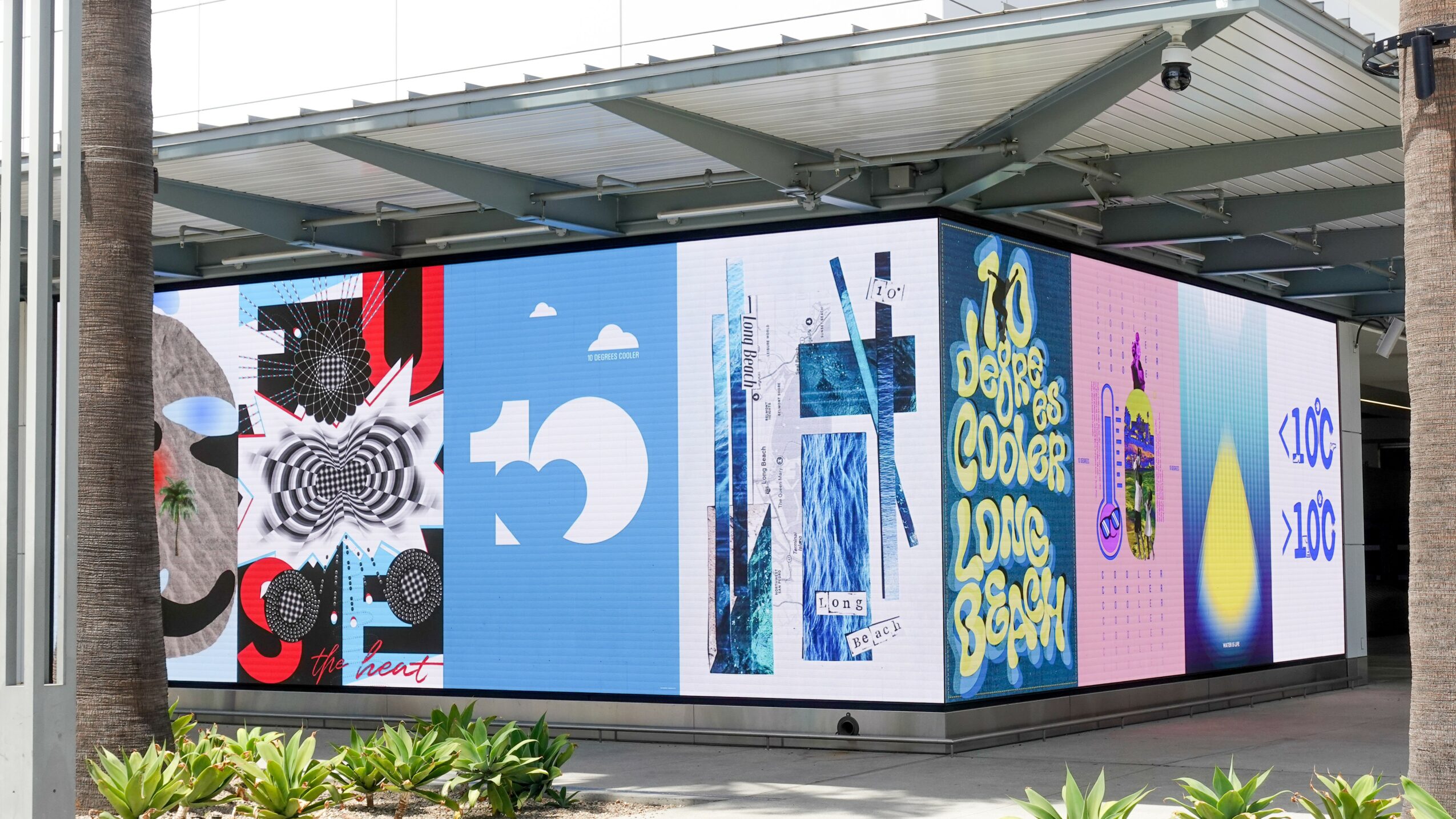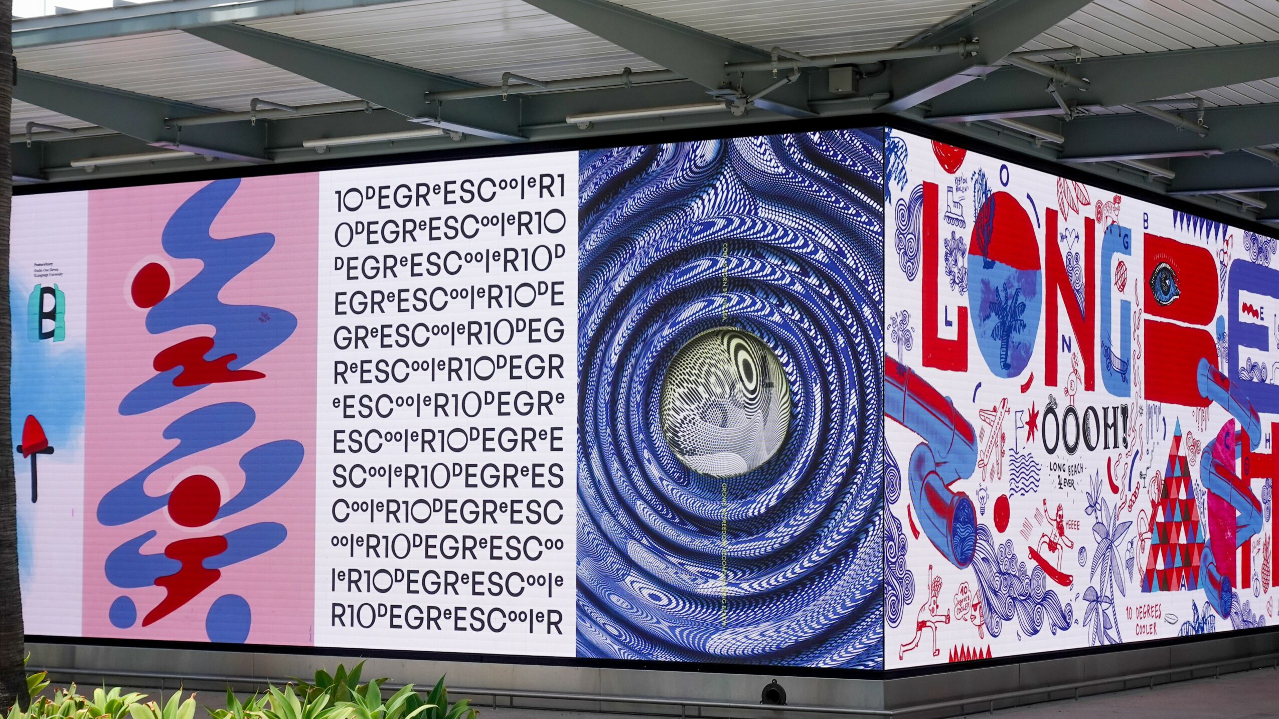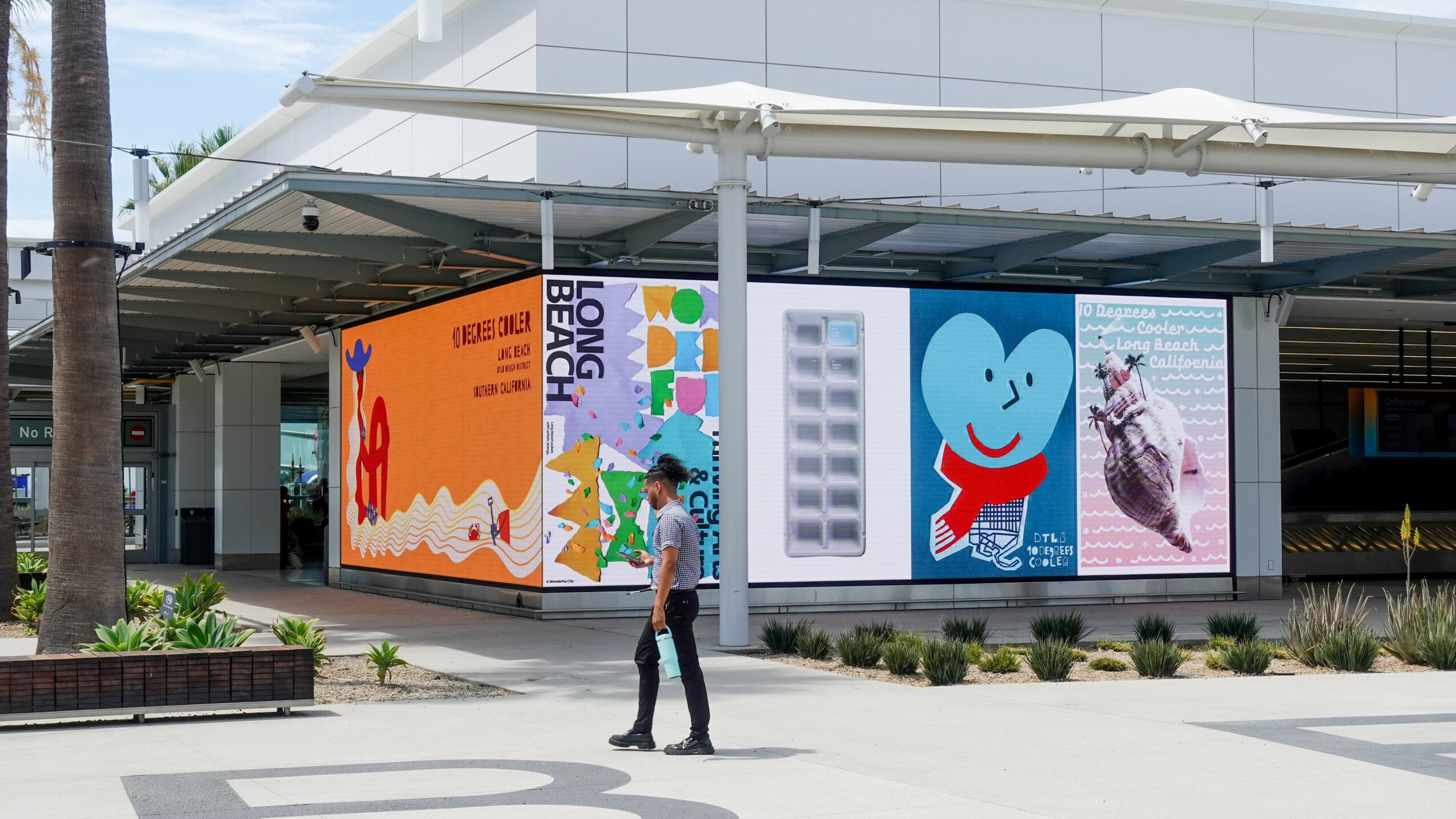2. Photos or 10 Degrees Cooles International Poster campaign by Long Beach Design District at Downtown Long Beach and Long Beach Airport (LED screen) Photos by Olga Severina and Kathy Lin